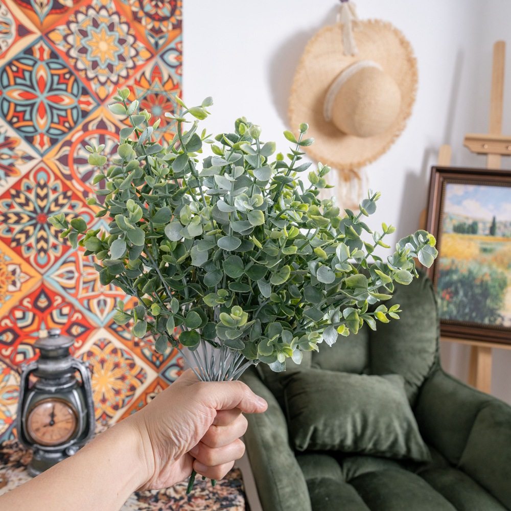 仿真花INS风尤加利金钱叶配草家居装饰婚庆植物墙假花MW56003