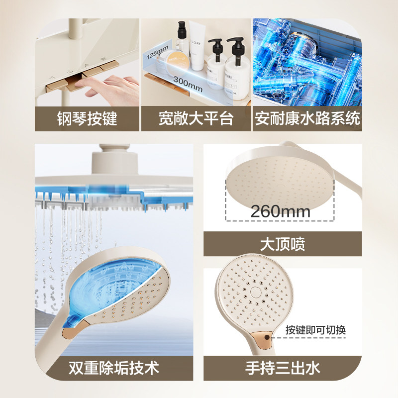 恒洁钢琴按键花洒套装淋浴器家用置物浴室卫生间明装易洁除垢Y56