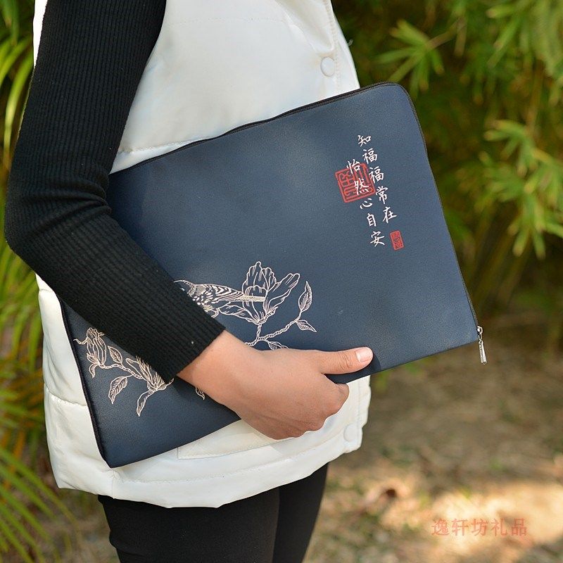 笔记本电脑内胆套13寸手抓包禅意复古刺绣平版电脑包手提袋文件包
