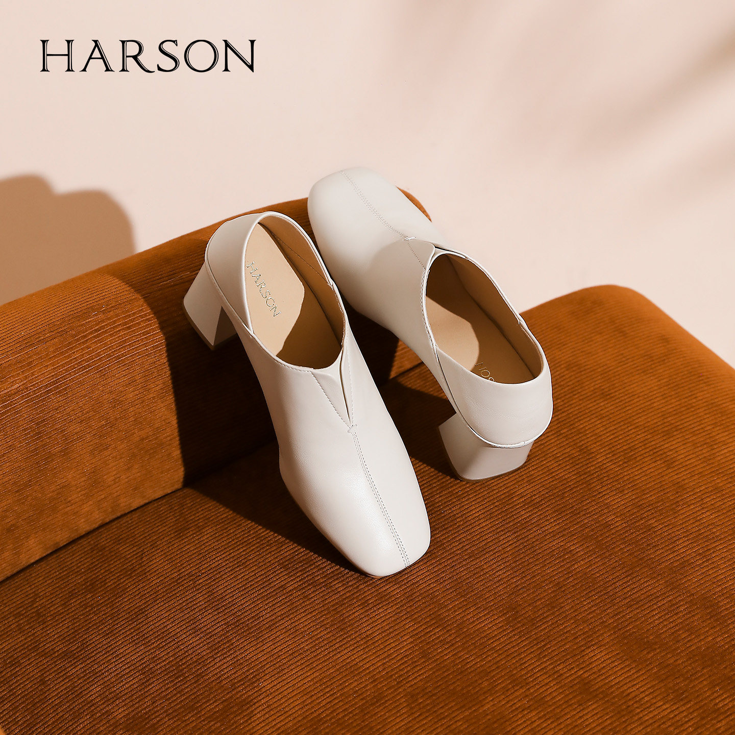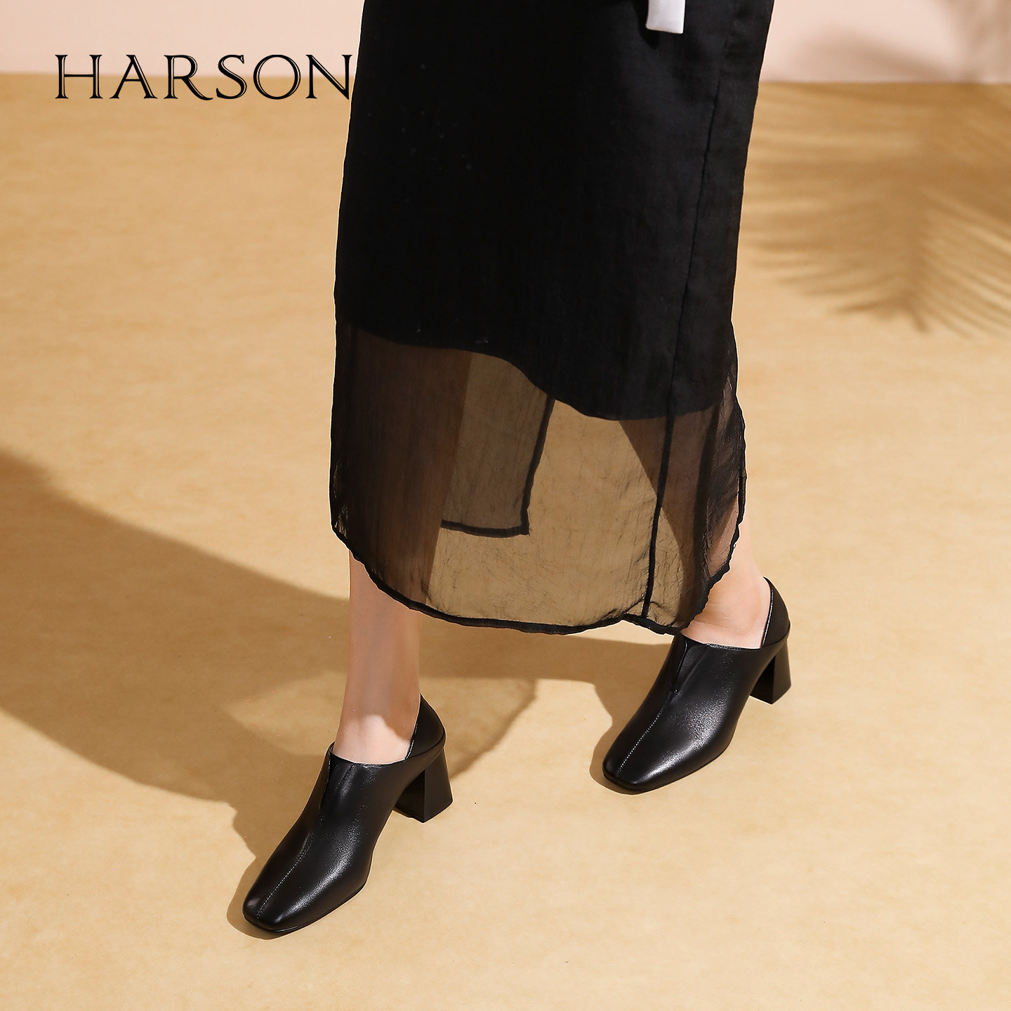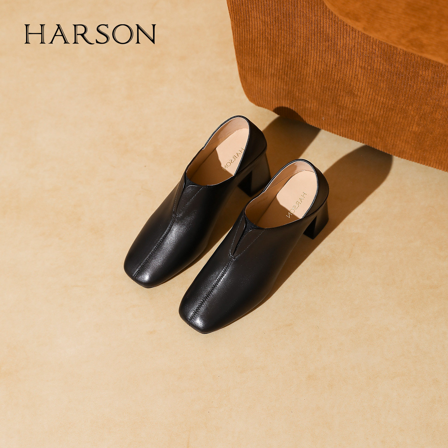 哈森复古小羊皮高跟鞋女2025秋季新款方头粗跟通勤靴子HL257155