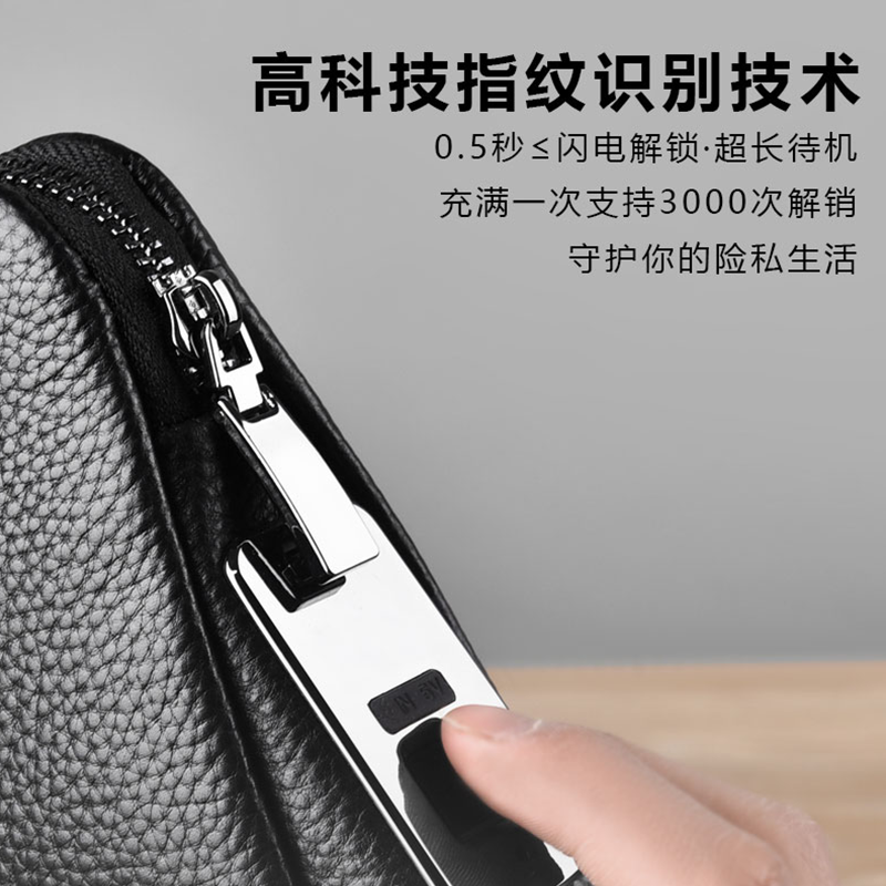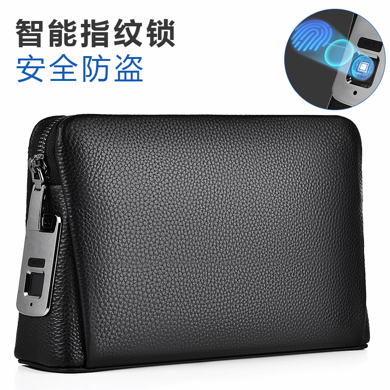 男士真皮手拿包指纹锁手机包钱包生日礼物商务钱夹密码锁牛皮手包