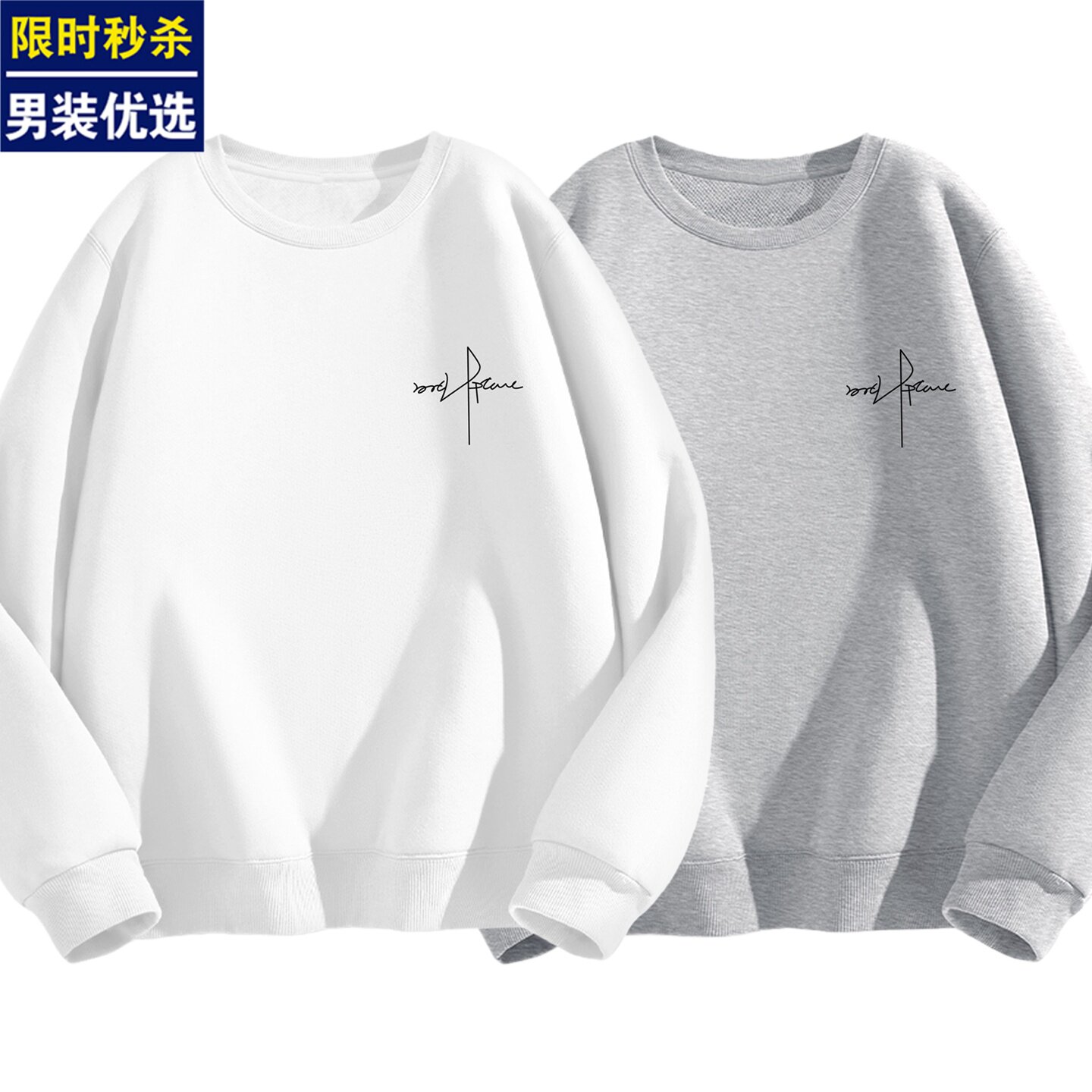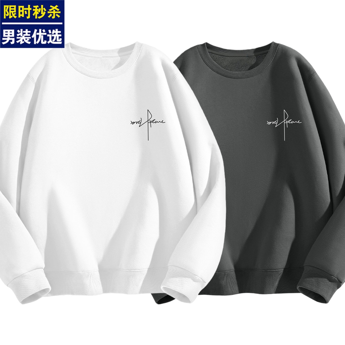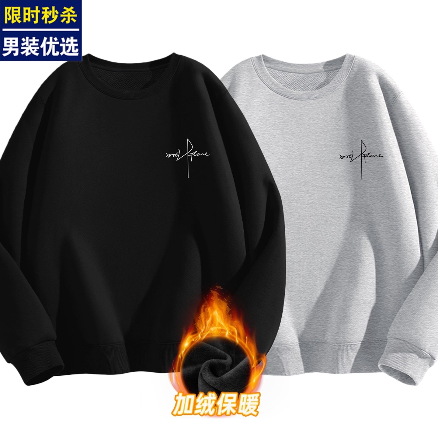 重磅加绒卫衣男士秋冬款青年纯棉印花圆领加厚宽松长袖t恤上衣服