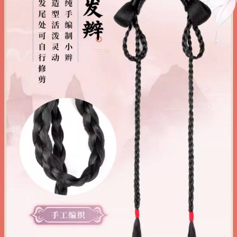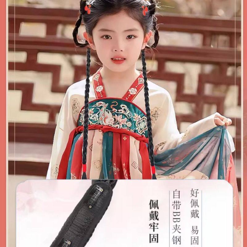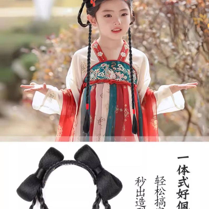 儿童汉服假发一体式古风盘发发髻女童蝴蝶结发包古装头饰垫发造型
