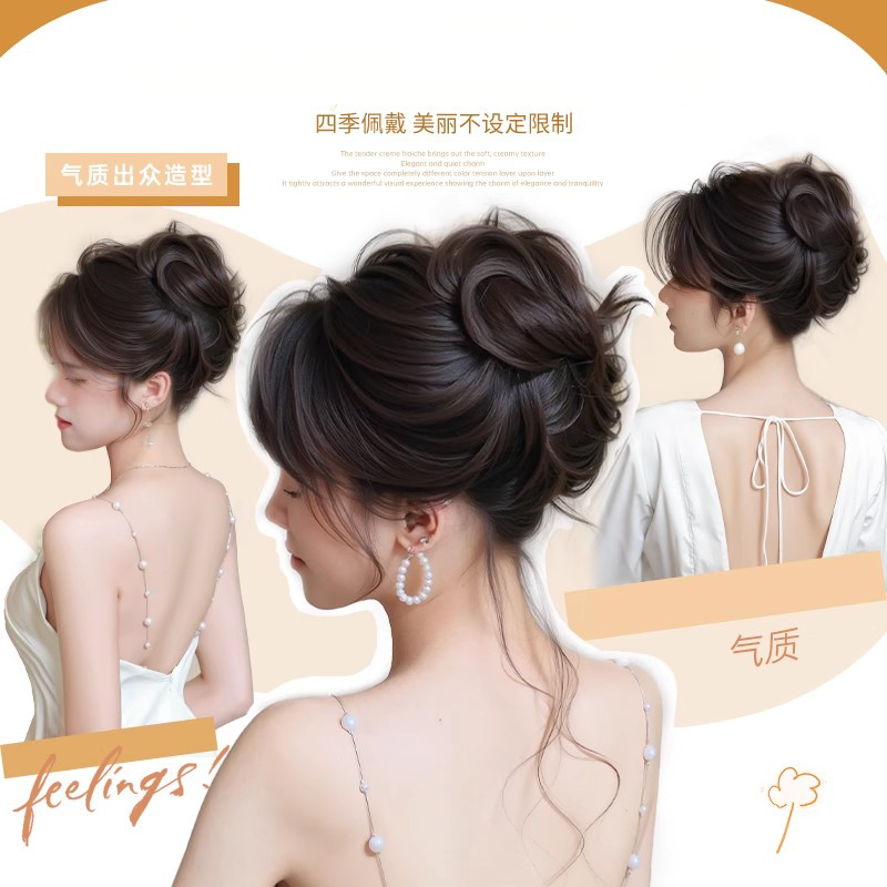 低扎丸子头假发鸡毛头抓夹盘发发包慵懒感造型头饰自然蓬松后脑勺