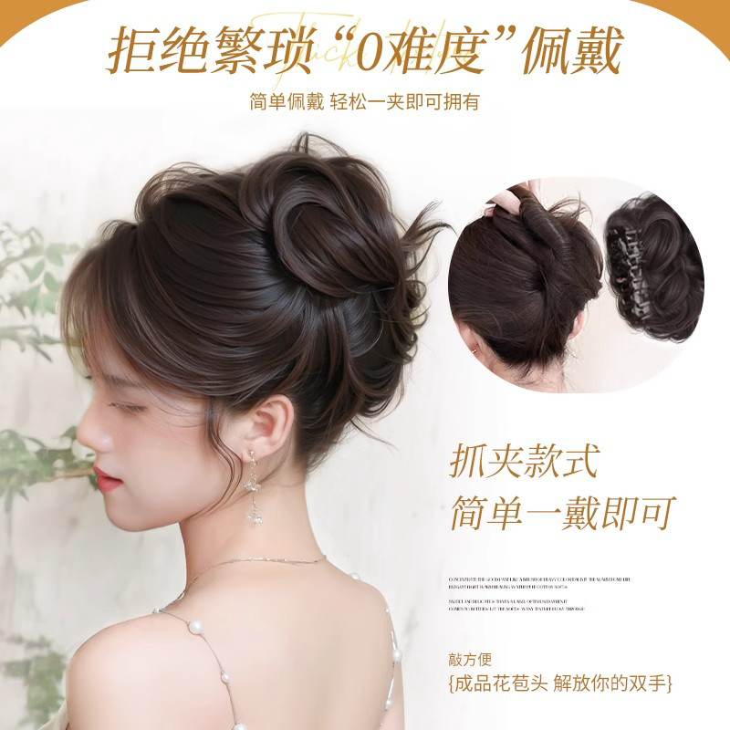 丸子头假发女抓夹鸡窝头高颅顶花苞头懒人盘发神器假发发包仿真发