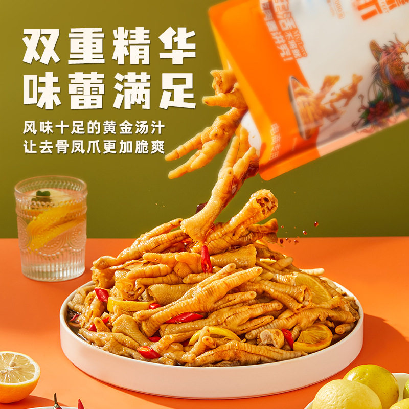 比比赞无骨鸡爪柠檬酸辣去骨凤爪脱骨网红解馋即食零食休闲小吃