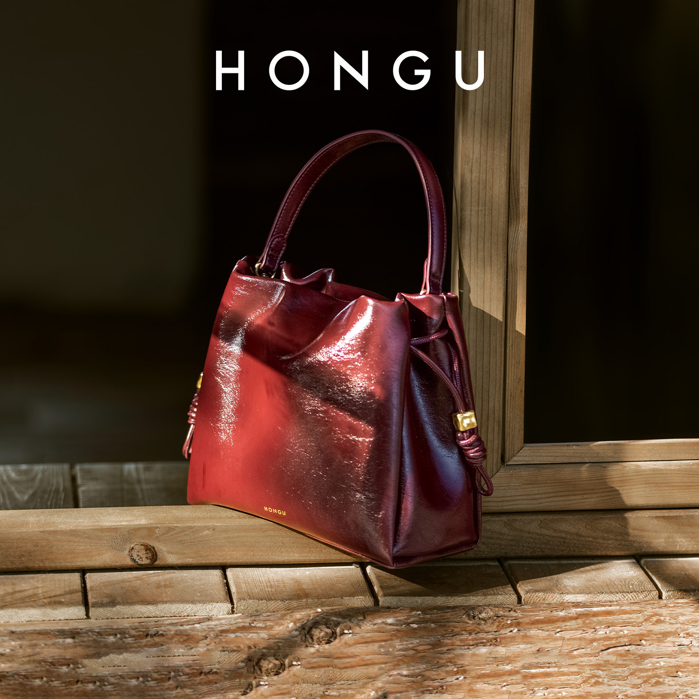 红谷包包2025新款质感真皮单肩手提包时尚高级感斜挎元宝包女士包
