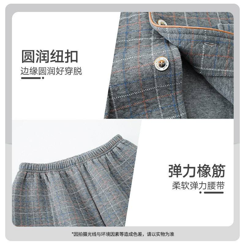 男士睡衣秋冬季三层加厚加绒珊瑚绒夹棉保暖中老年爸爸家居服套装