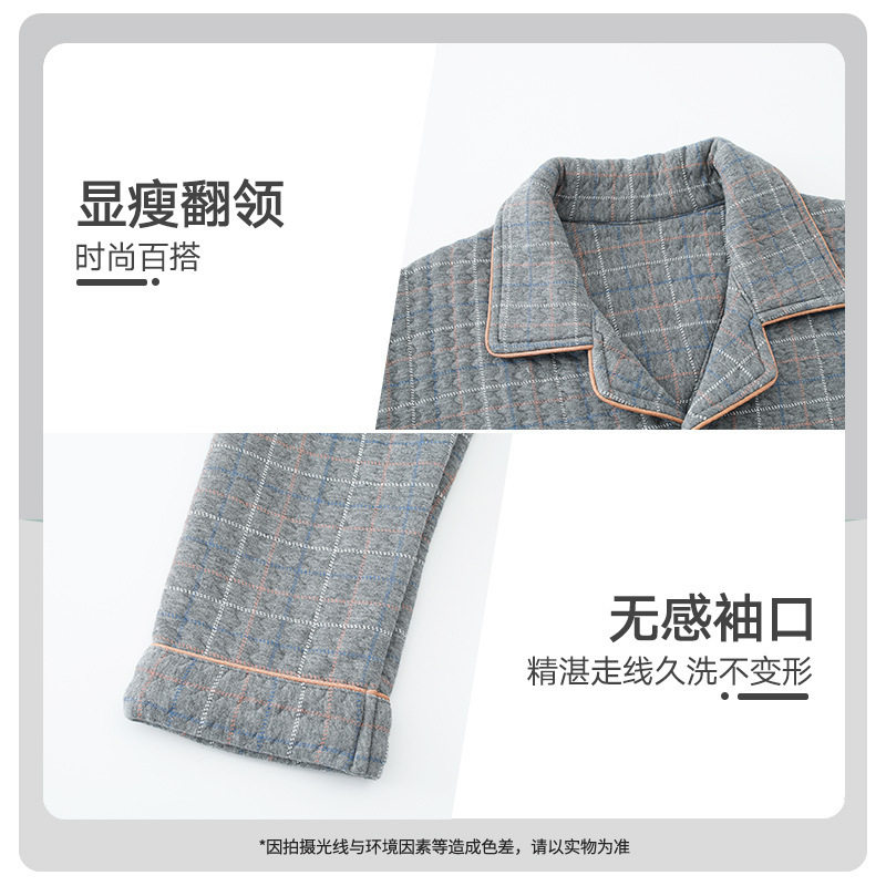 冬季珊瑚绒男士睡衣三层夹棉加厚加绒法兰绒秋冬款家居服保暖套装