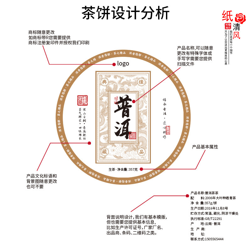 9.9元包邮手工200克茶叶包装棉纸白茶黑茶普洱茶印刷茶饼包装纸