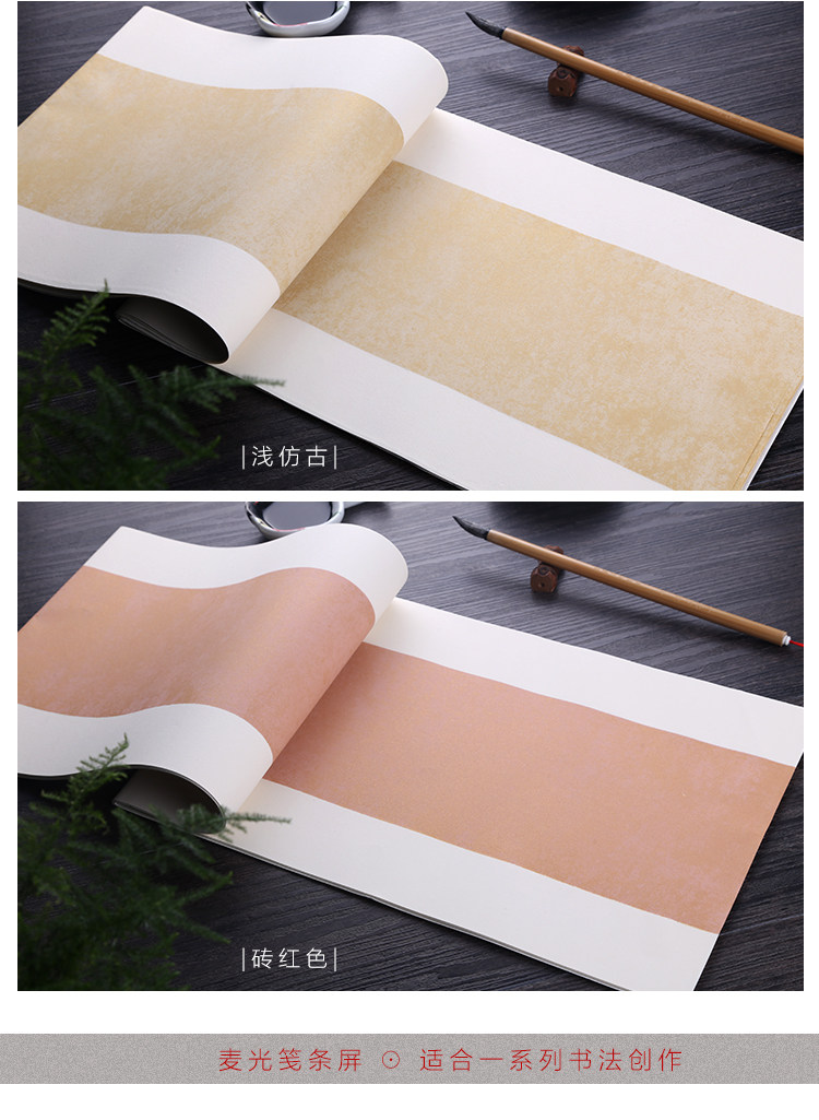 泾县兴文斋四尺对开蜡染麦光笺条屏六尺三开砖红色中仿古天蓝行草