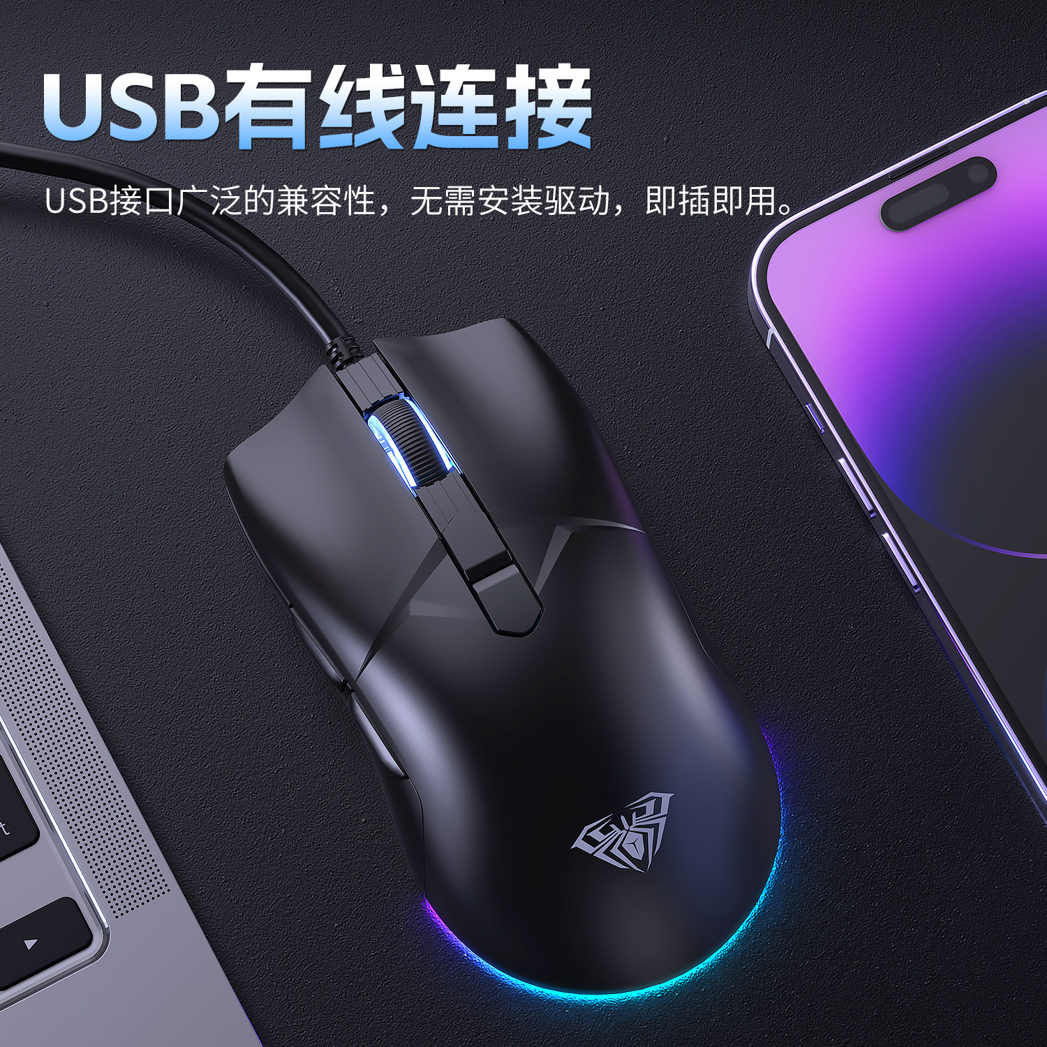 英菲克PW1有线鼠标静音游戏电竞机械宏办公usb台式笔记本电脑专用