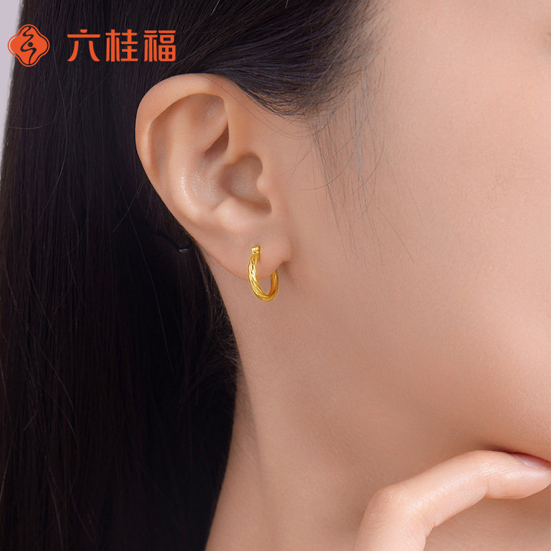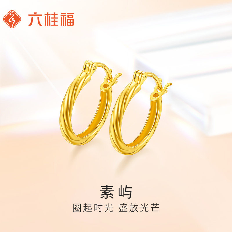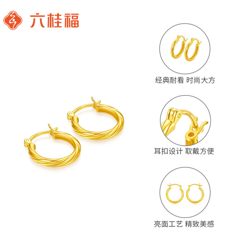 六桂福珠宝18K金麻花耳圈黄彩金耳环复古百搭首饰圣诞礼物送女友
