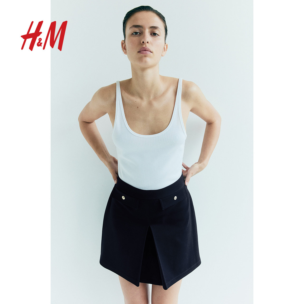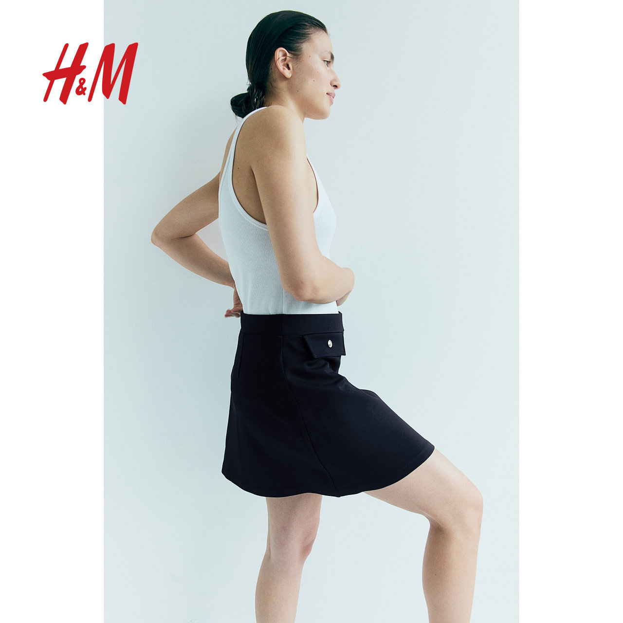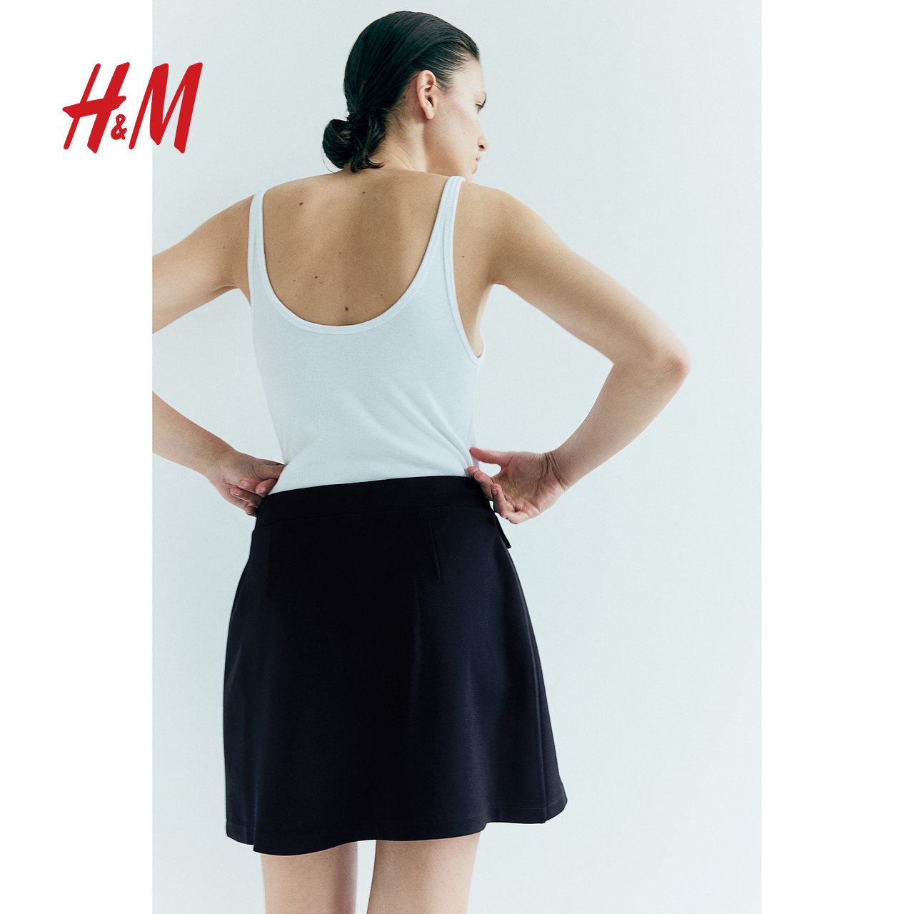 HM女装半身裙秋季休闲舒适褶裥高腰A字半身短裙1253985