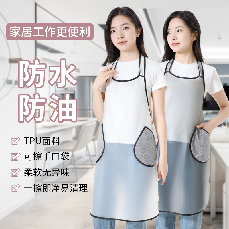 TPU围裙女厨房家用做饭防水防油可擦手餐饮专用围腰