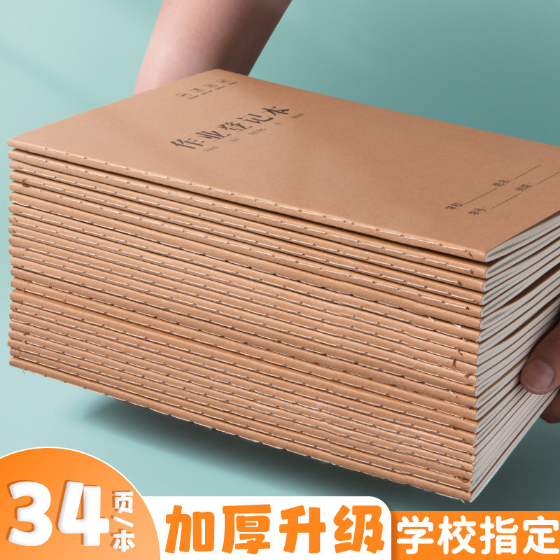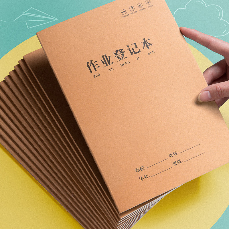 作业登记本小学生一年级专用初中生三年级牛皮纸笔记本家庭抄作业记事本开学必备文具家校联系本加厚笔记本子