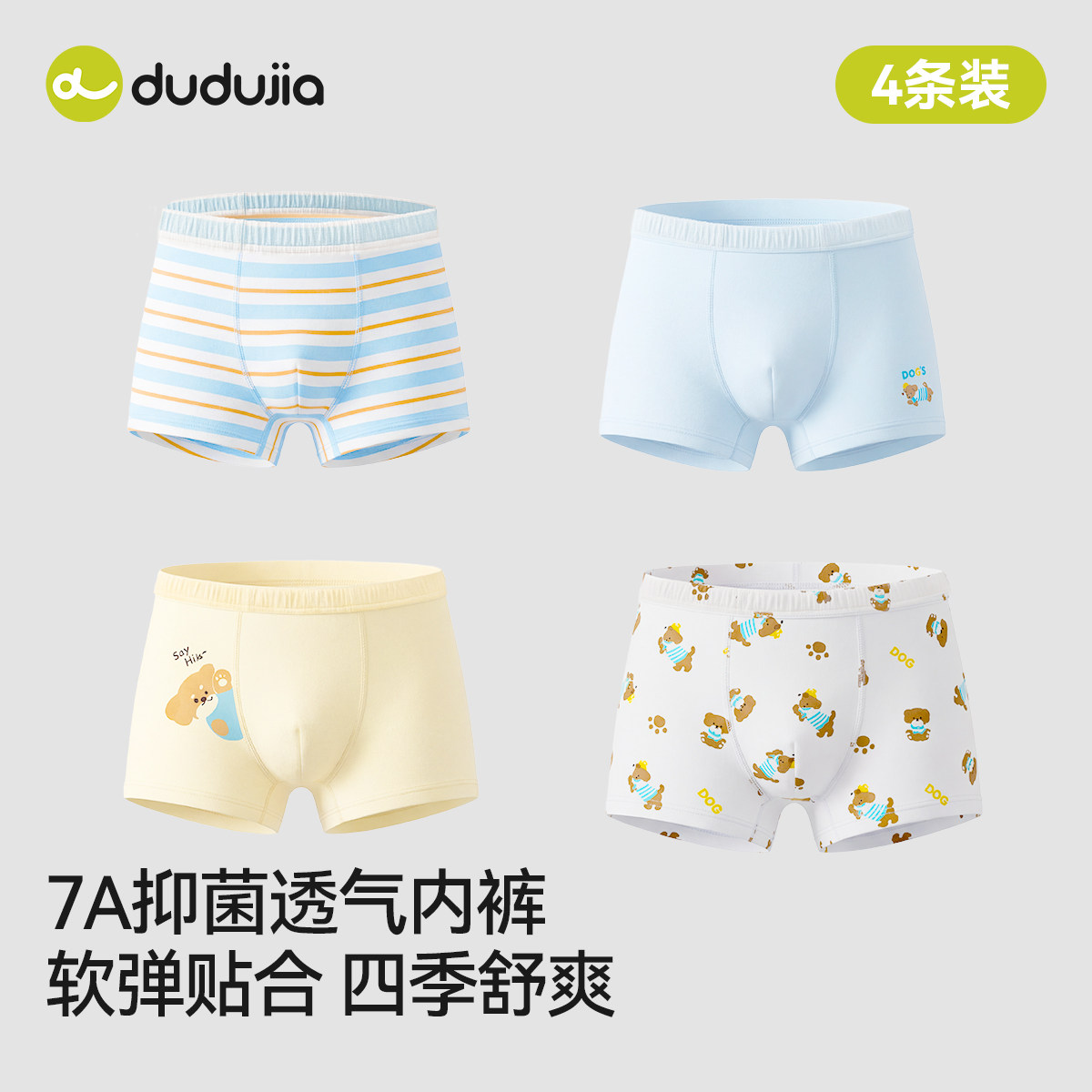 [7A抑菌]嘟嘟家儿童纯棉内裤男童全棉平角裤女童春季宝宝四角短裤