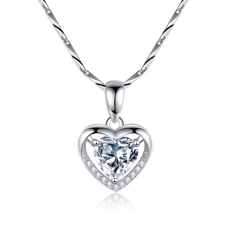 s925纯银项链永恒之心项链女简约闺蜜玫瑰花爱心形吊坠锁骨链脖链