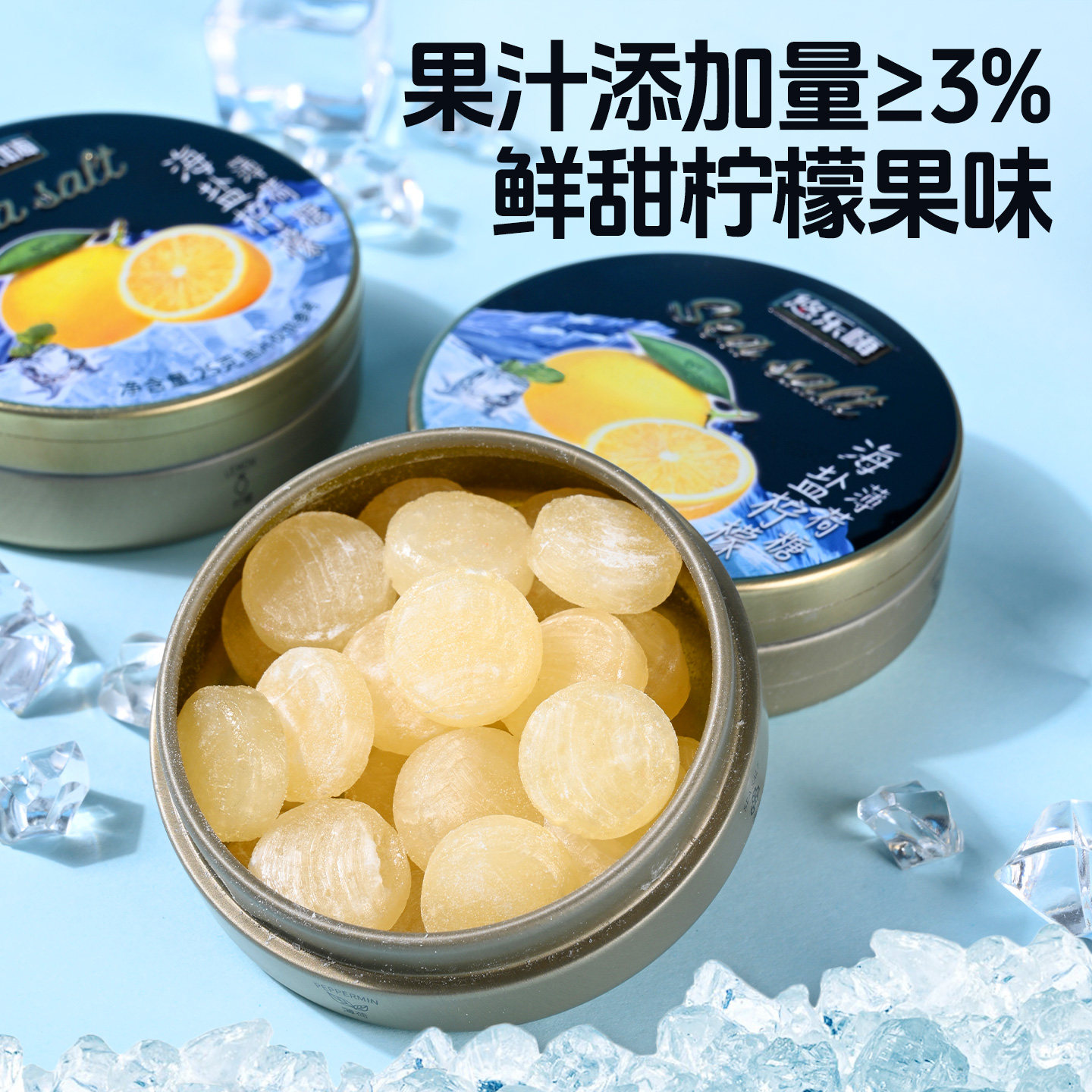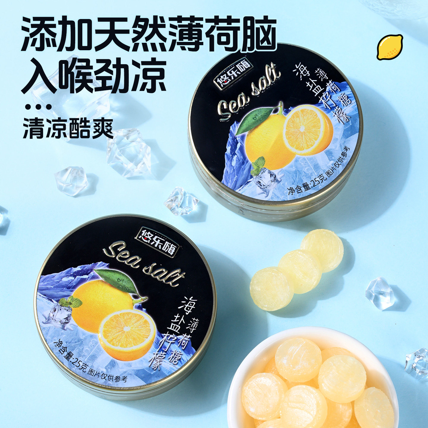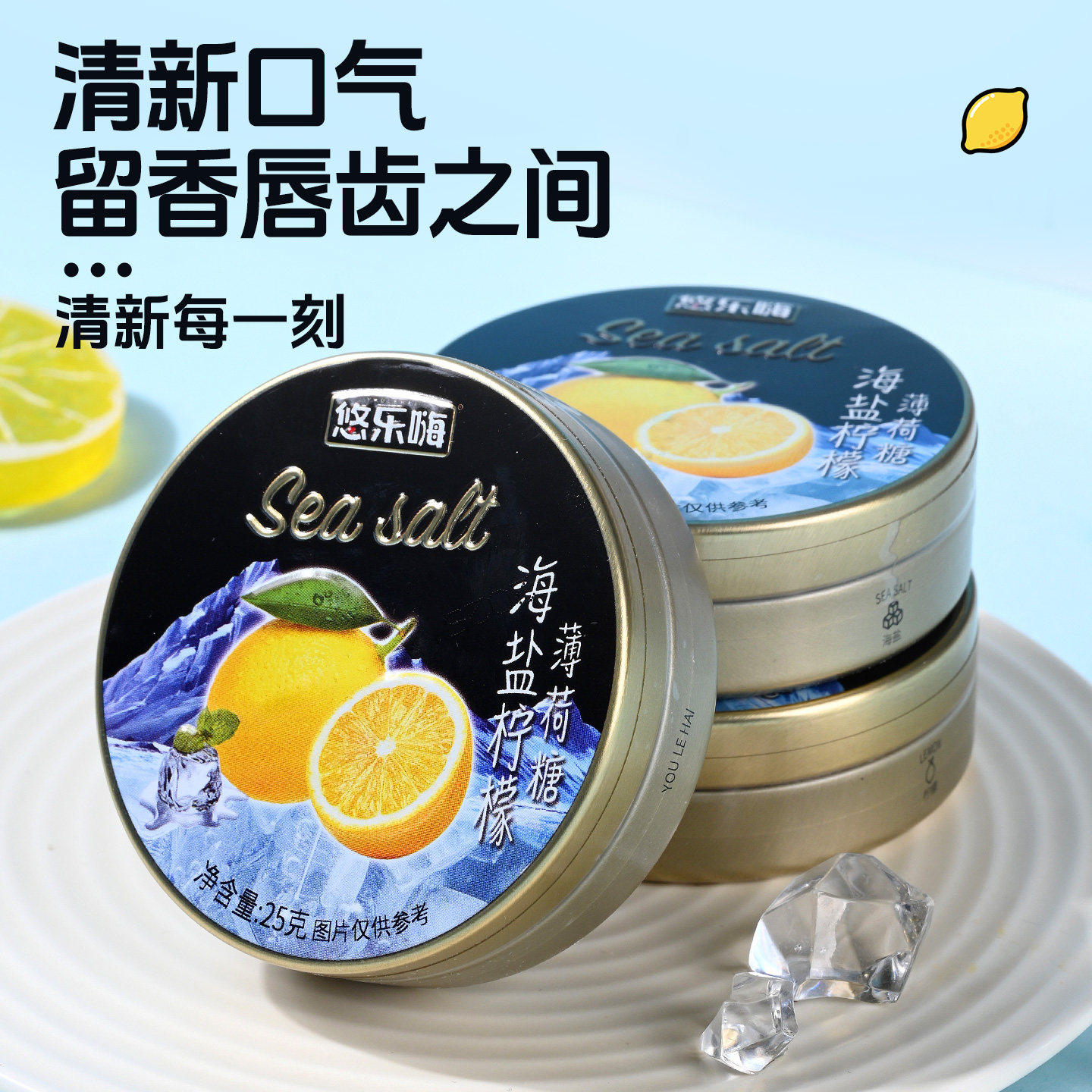 清凉海盐柠檬糖润喉糖水果味薄荷糖清新口气休闲小零食硬糖铁盒装