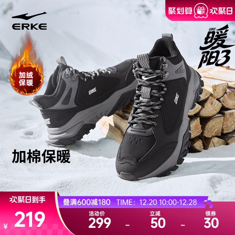 鸿星尔克暖阳3保暖大棉鞋加绒休闲鞋男防滑冬季中高帮加厚运动鞋