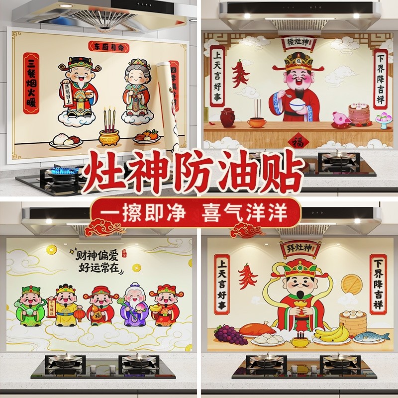 灶台财神厨房防油贴纸防火耐高温自粘防水墙纸油烟机墙面装饰贴膜
