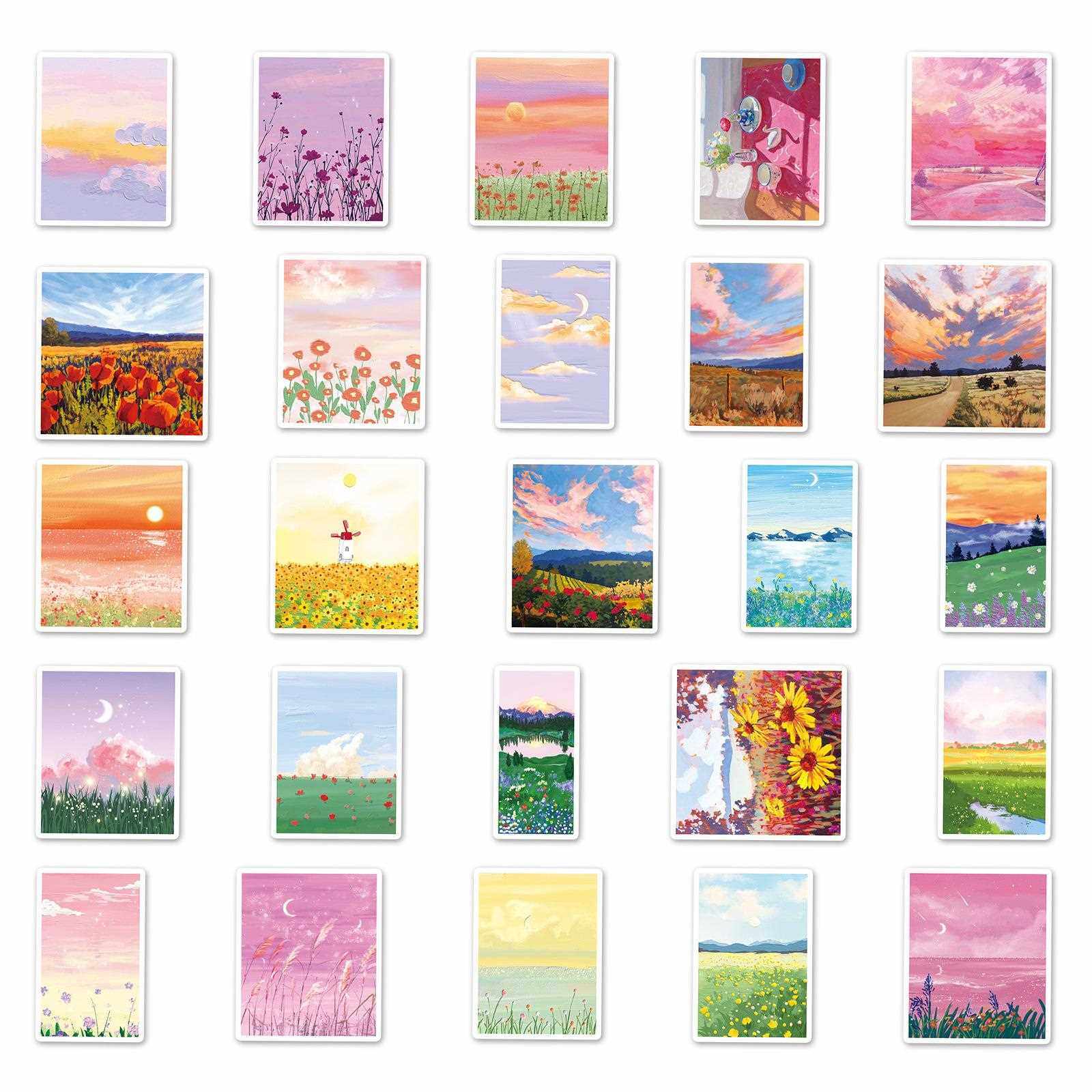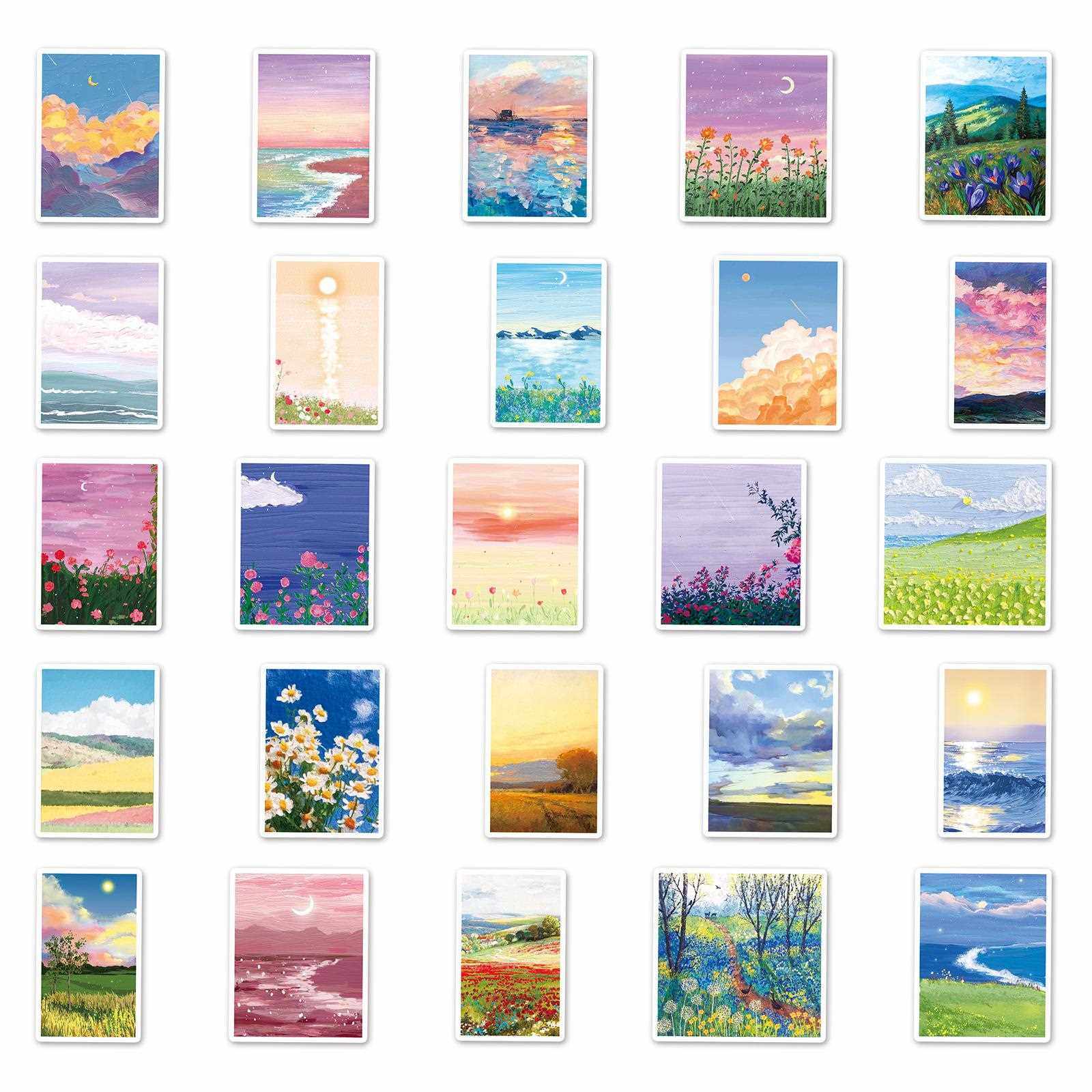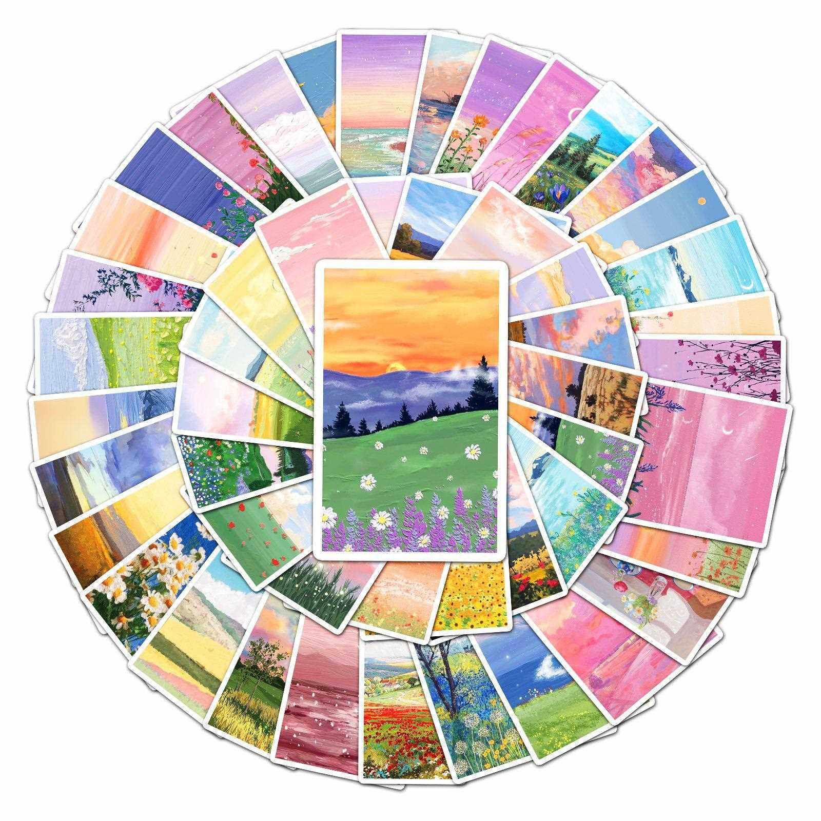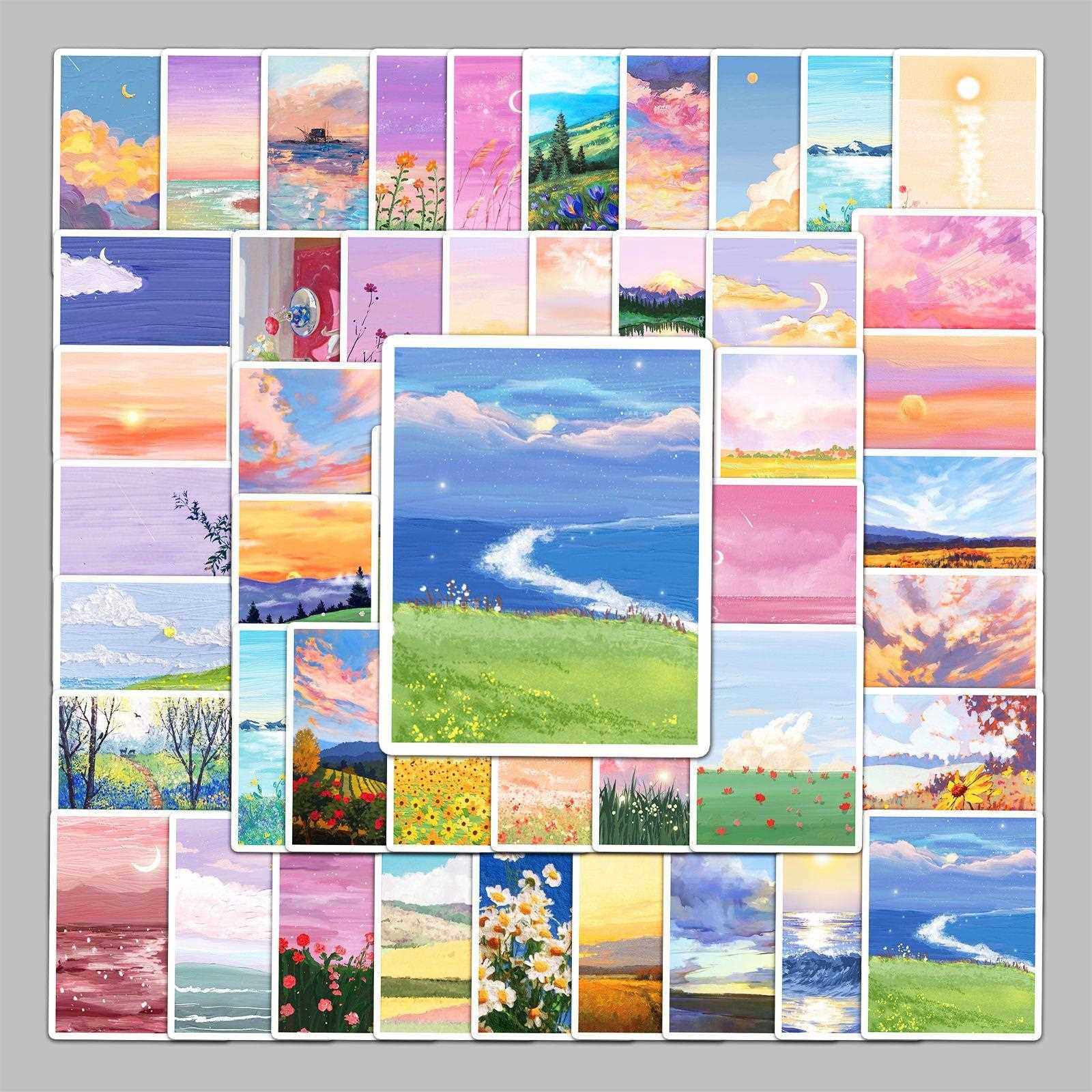 新款直销50张风景油画行李箱贴纸创意防水涂鸦贴纸滑板车电脑平板