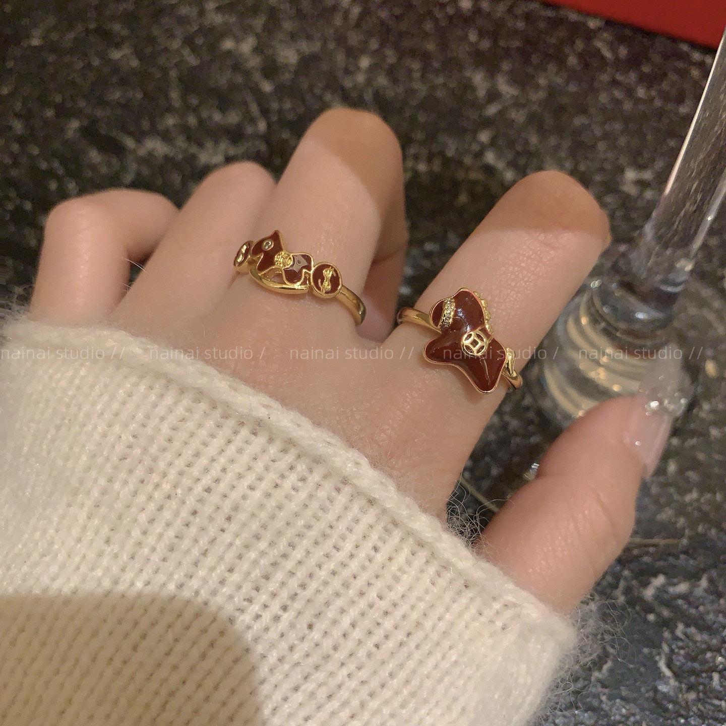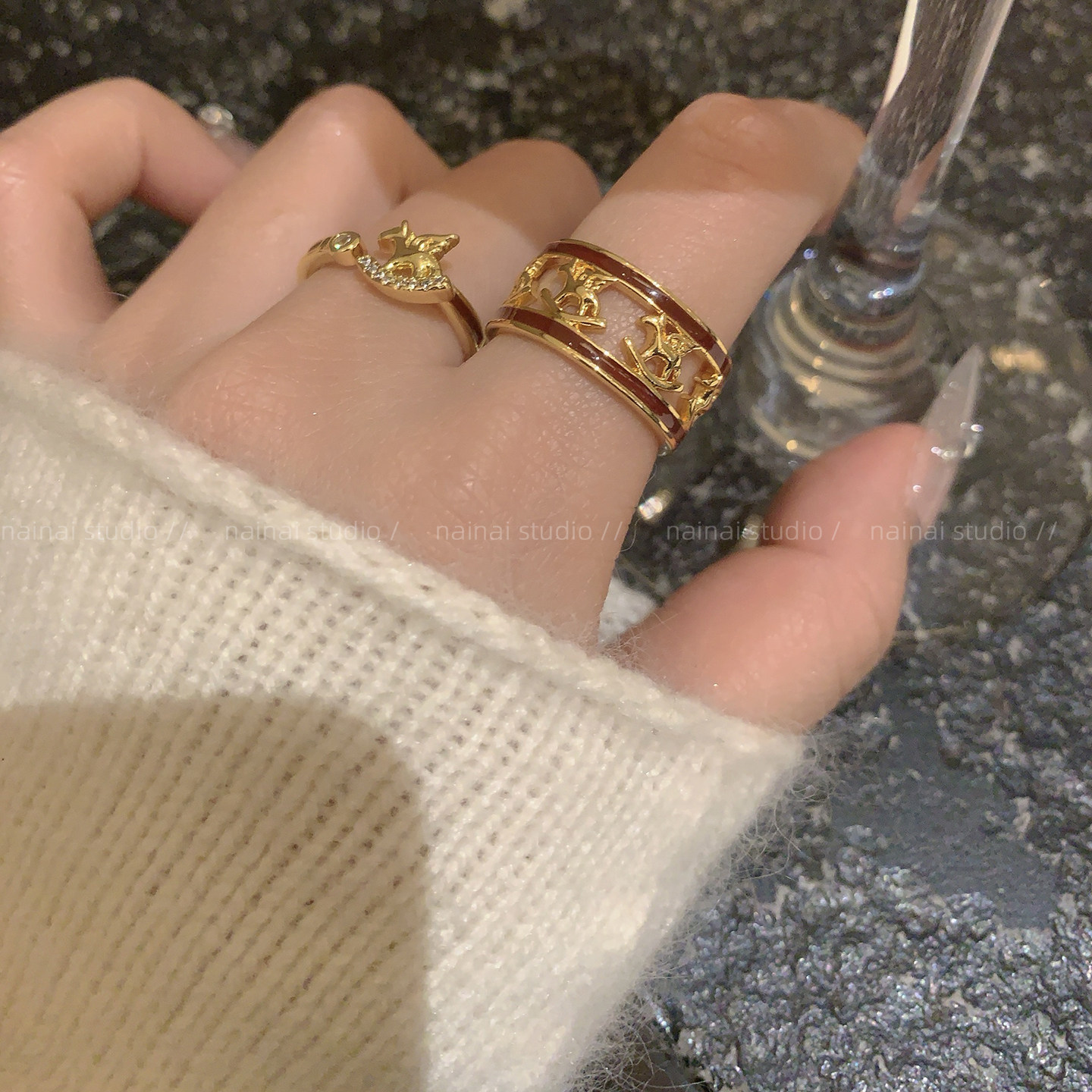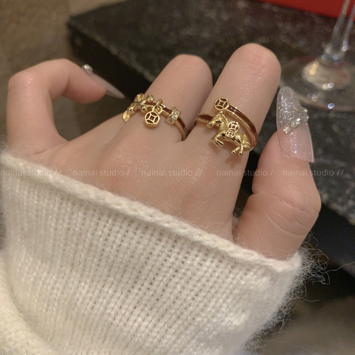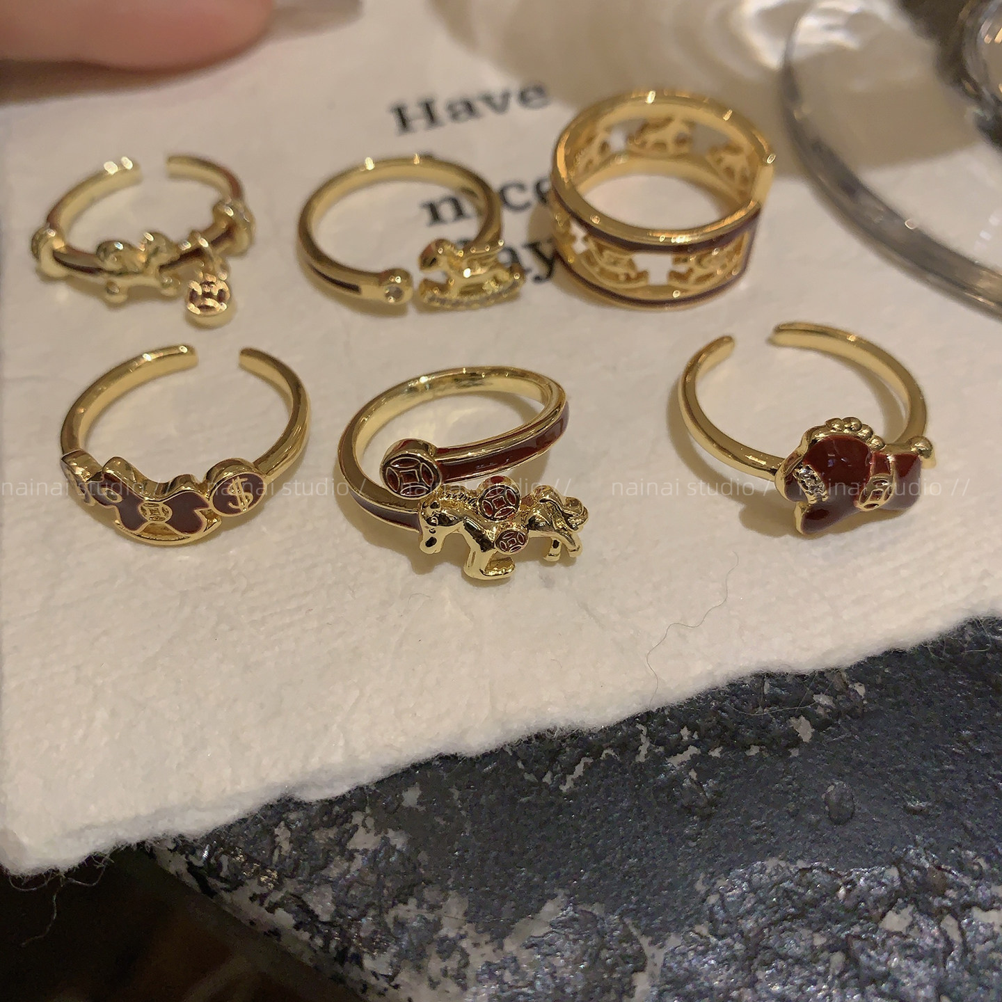 小马戒指集合~红色新年叠戴本命年高级感轻奢食指戒女指环