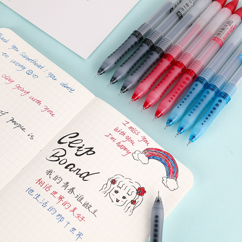 晨光按动中性笔黑色笔速干顺滑高颜值红蓝碳素笔考试办公用签字笔