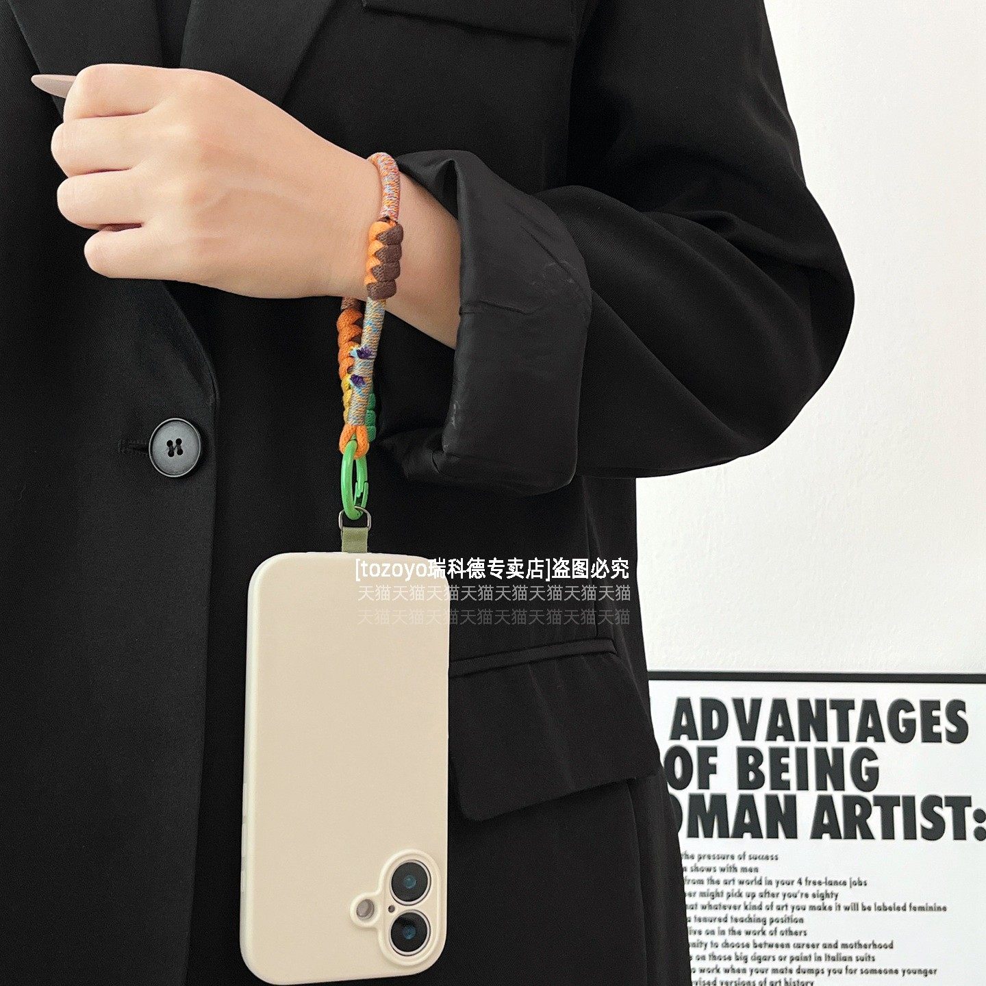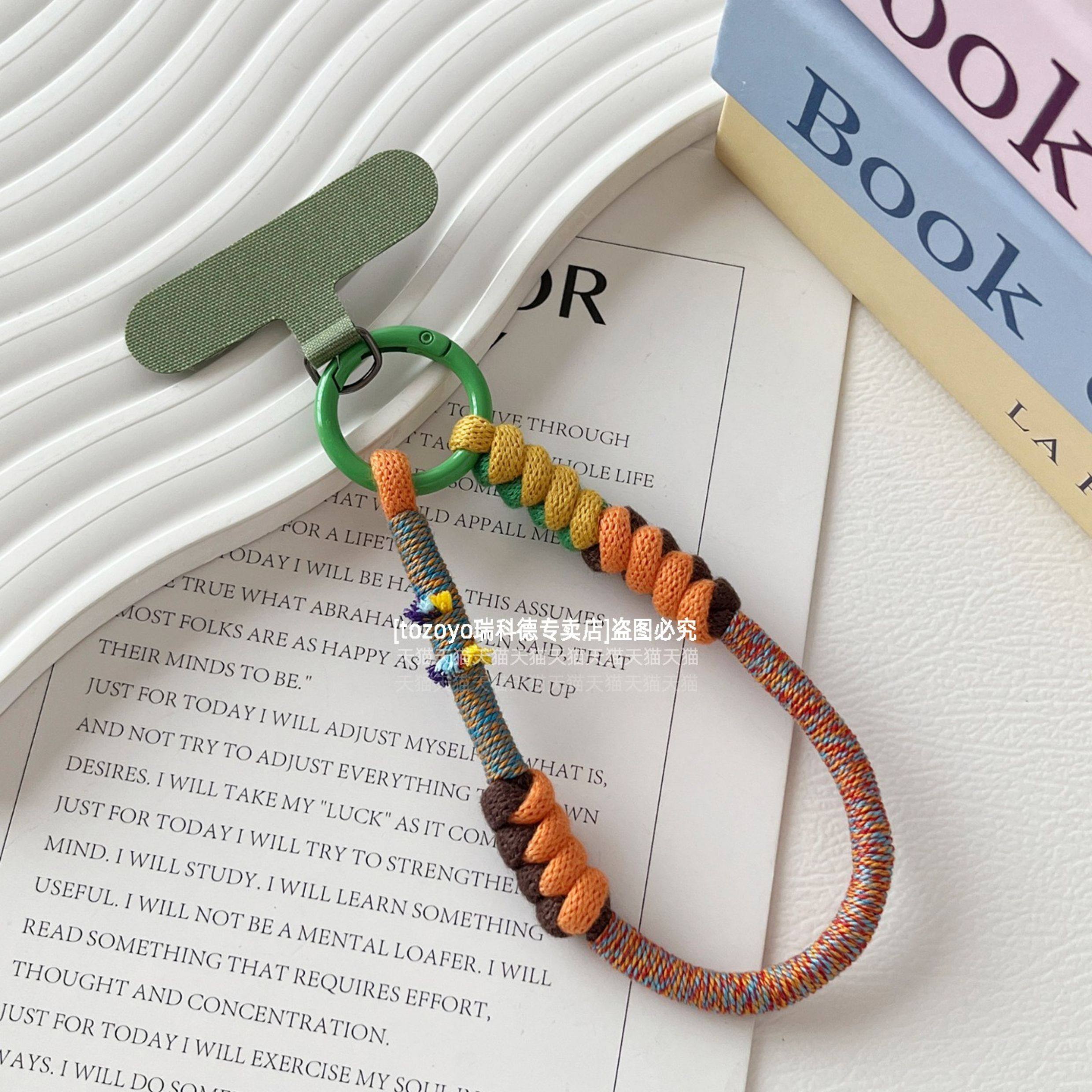 民族风棉质拼色手机挂绳手工编织布艺结实腕带挂手腕手绳复古高级感原创吊绳短款好看文艺女旅游挂件包垫片壳