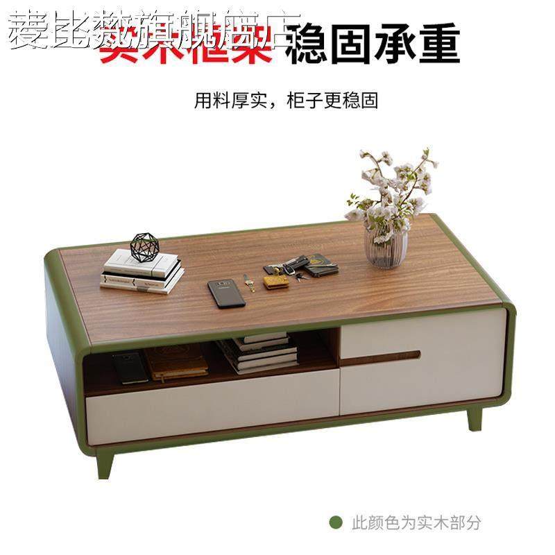 麦比梵茶几电视柜组合客厅家用2024新款新中式现代简约实木边框一体靠墙床笠拉车