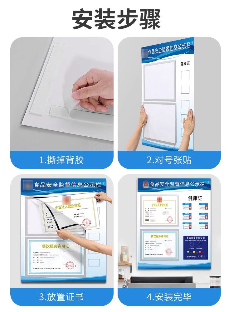 食品安全监管信息公示栏卫生等级监督营业执照展示牌告知牌墙贴健康证许可证挂牌定制餐饮服务行业三合一框架