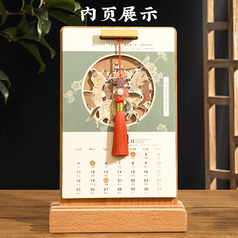 2026年新款日历实木竖款创意镂空台历礼盒装计划本自律打卡商务办公室桌面摆件月历企业年会宣传广告订做logo