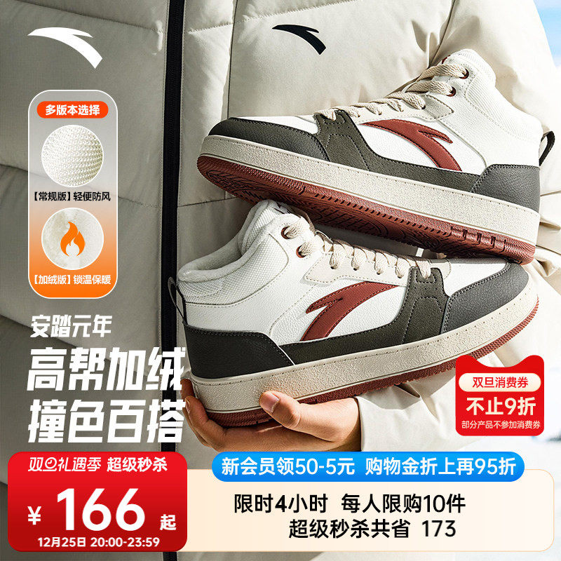 安踏元年丨厚底板鞋男鞋学生小白鞋冬季百搭轻便休闲鞋经典运动鞋