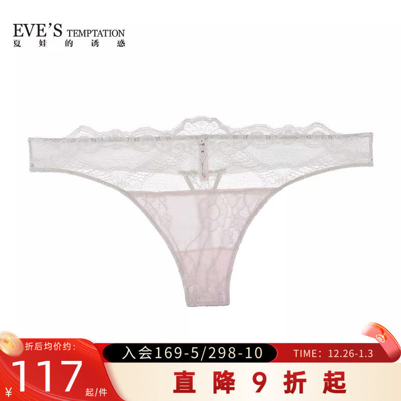 夏娃的诱惑魅内裤女夏季薄款蕾丝透气桑蚕丝低腰纯棉裆底丁字裤