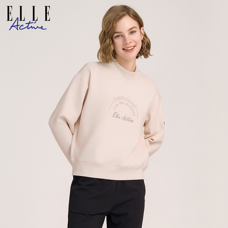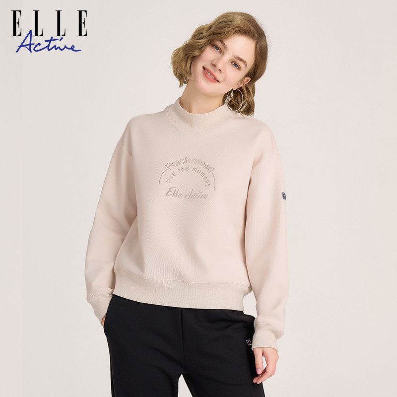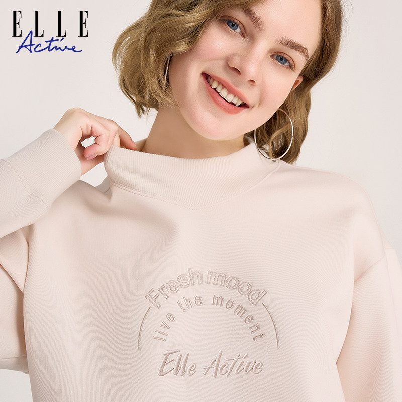 ELLE Active设计感半高领套头卫衣女春秋款宽松休闲百搭洋气上衣