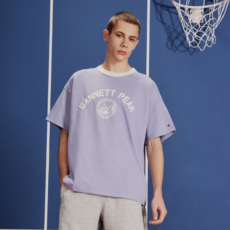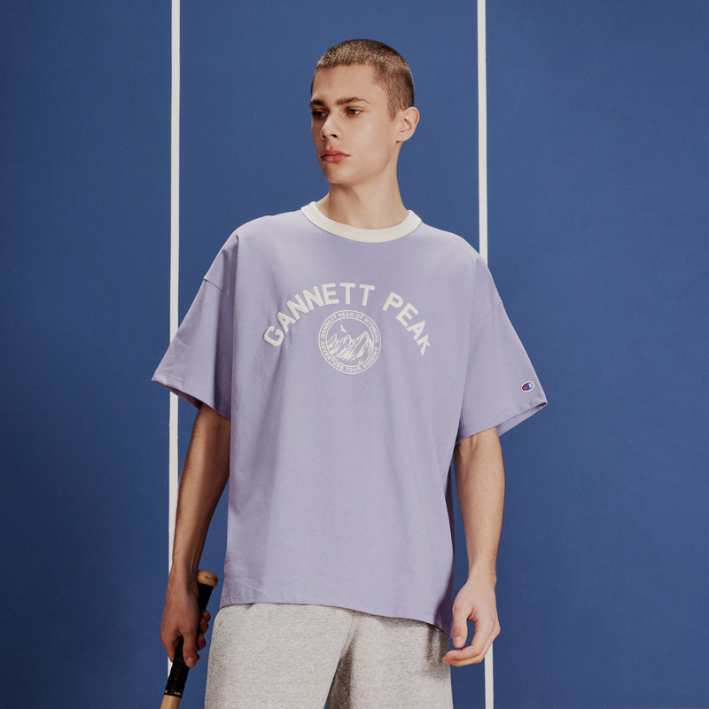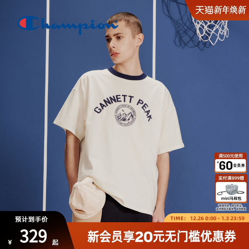 Champion冠军情侣短袖t恤男棉上衣夏装半袖女拼色印花舒适中性风