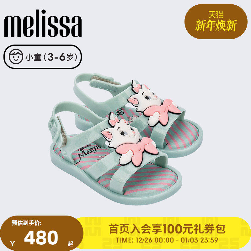 Melissa梅丽莎2025春MARIE小童迪士尼玛丽猫凉鞋魔术贴露趾35922