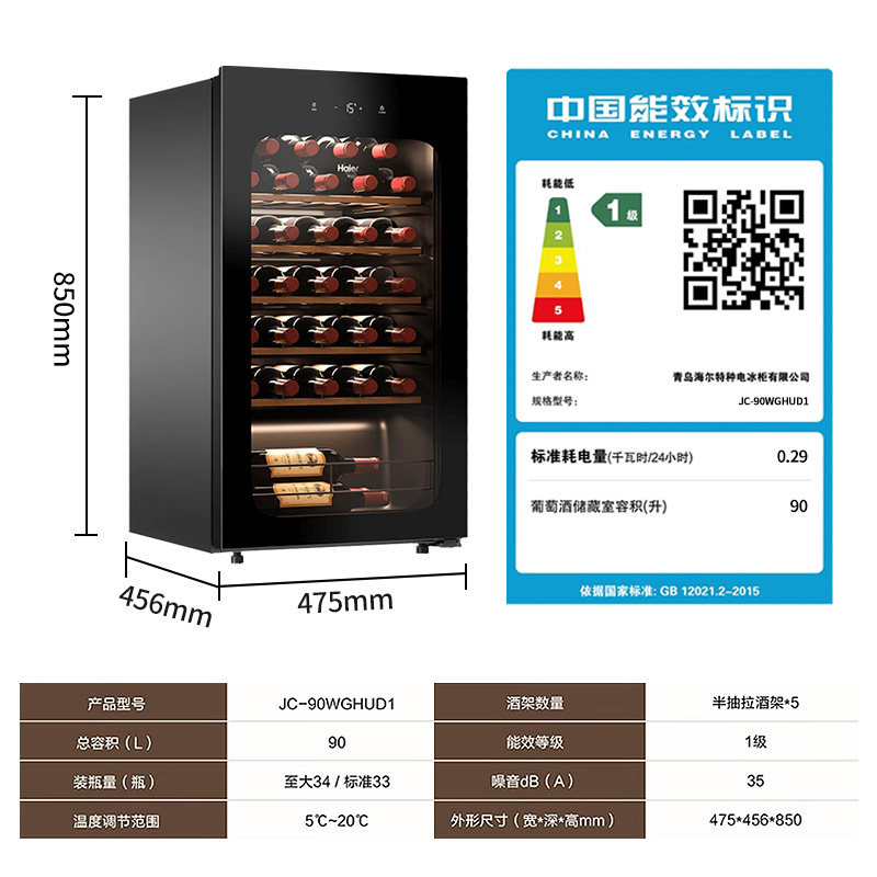 海尔红酒柜恒温家用小型嵌入式冷藏储存茶叶雪茄柜90/150WGHUD1