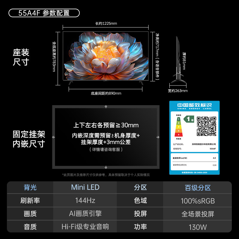 【换新补贴20%】创维A4F 55英寸Mini LED电视机官方液晶平板 122