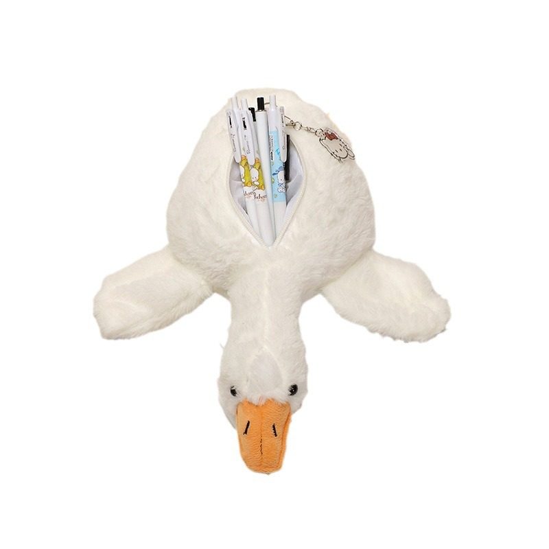 大白鹅毛绒笔袋高颜值ins风学生趣味动物卡通文具收纳袋鲨鱼公仔