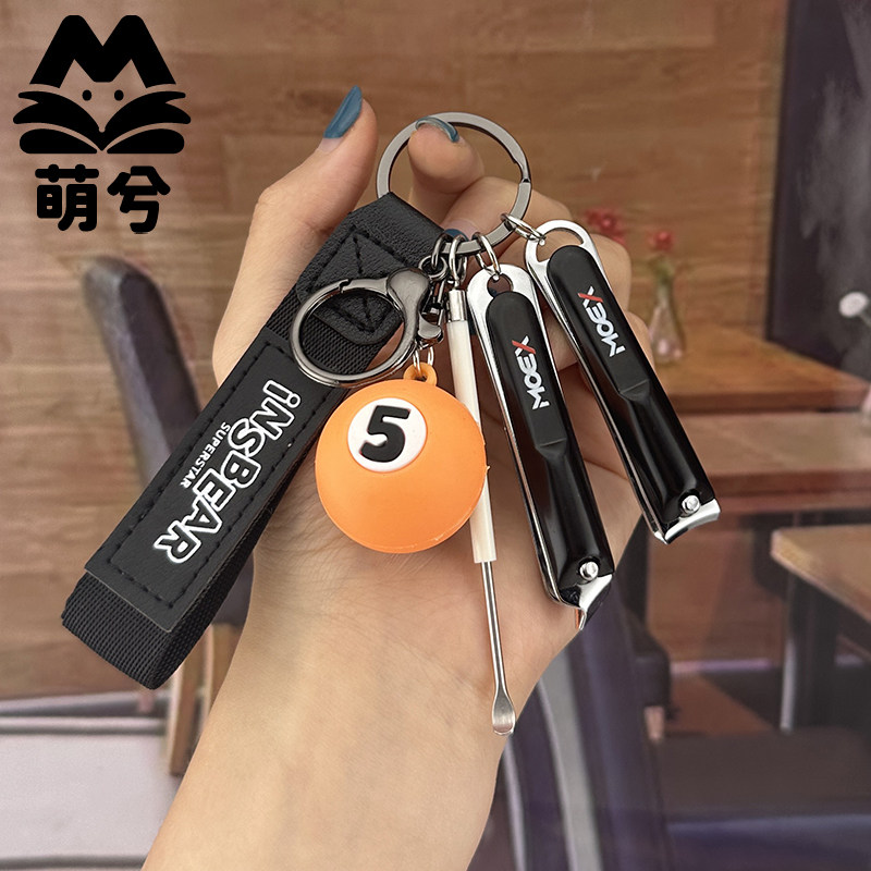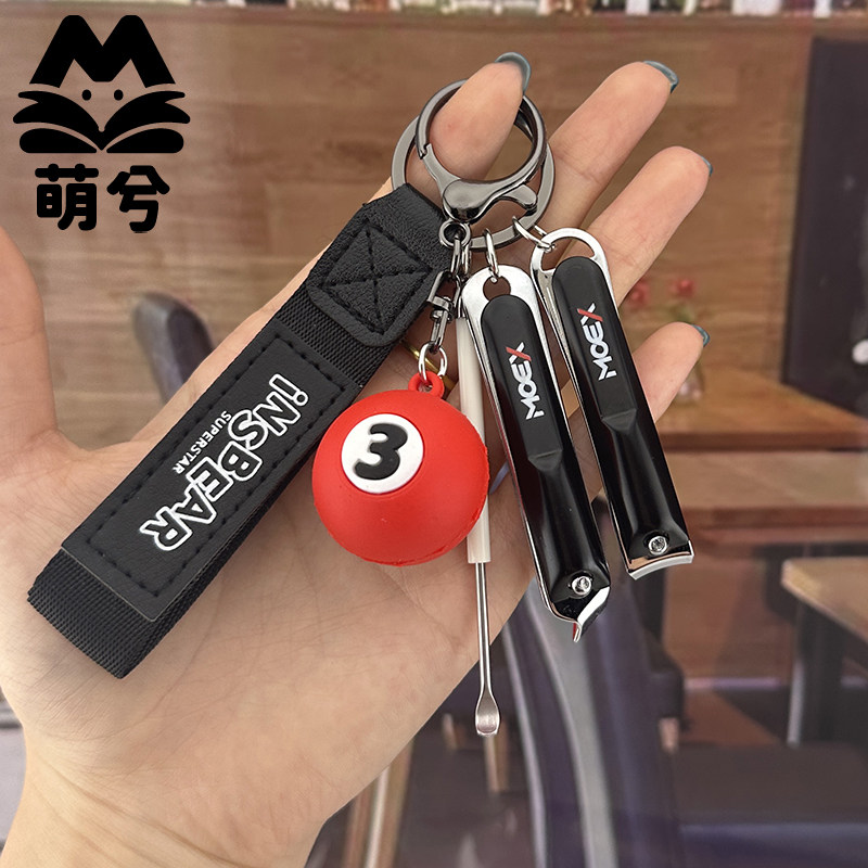 时尚台球钥匙扣套装指甲刀耳勺一套随身携桌球俱乐部卡通情侣挂饰