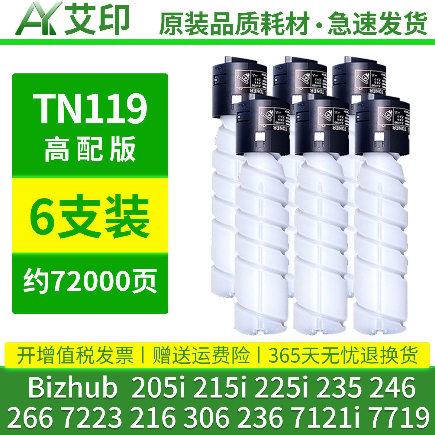 适用柯尼卡美能达TN119粉盒205i 215i 225i 235 246 266 7223 216 306 2367121碳粉Bizhub7719复印机墨粉墨盒
