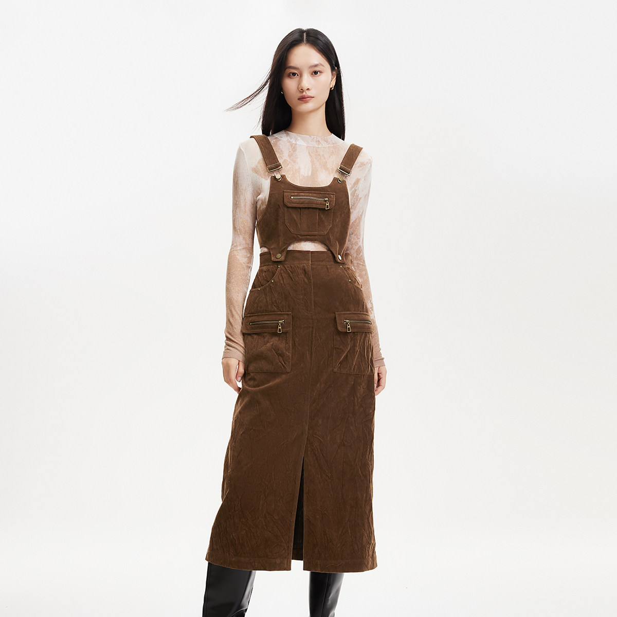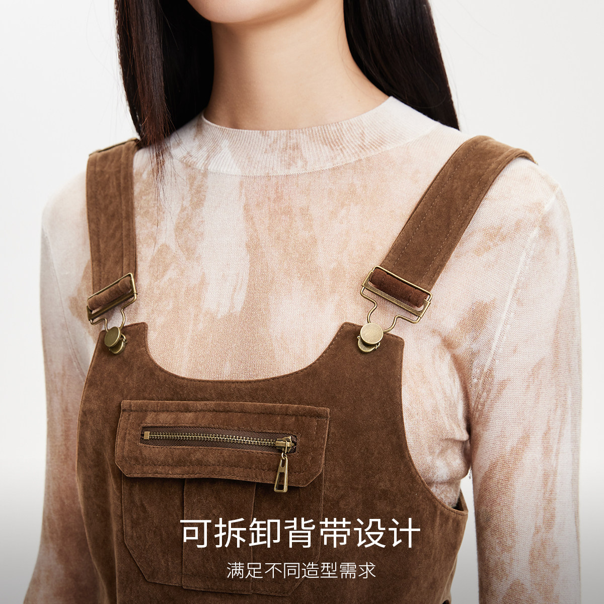 Vero Moda奥莱连衣裙秋冬新款背带上衣可拆绒面质感两穿背带裙