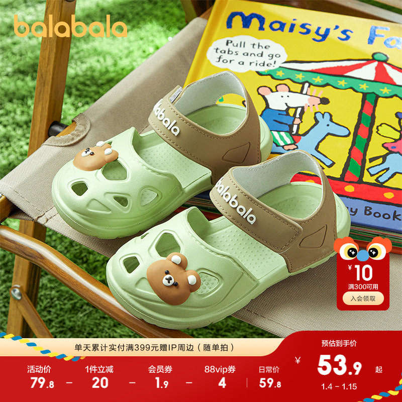 巴拉巴拉儿童拼色包头凉鞋沙滩鞋男女童拖鞋可爱洞洞鞋潮软底透气