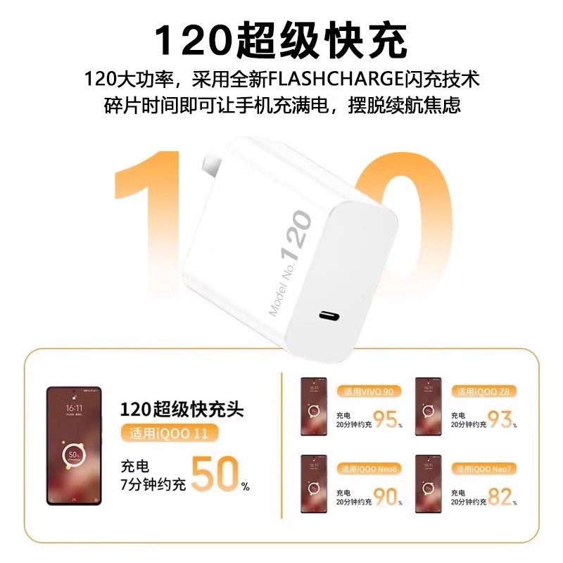 适用vivo手机充电器iqoo120W超级闪充7/8/9pro氮化镓10neo原X90插头11正品12套装5双type-c快充数据线