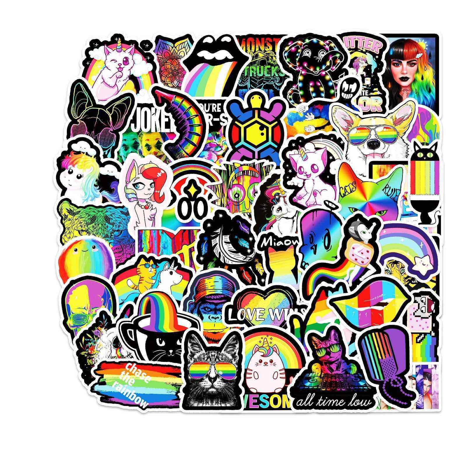 新款直销50张彩色系列卡通涂鸦贴纸行李箱滑板摩托车汽车冰箱装饰