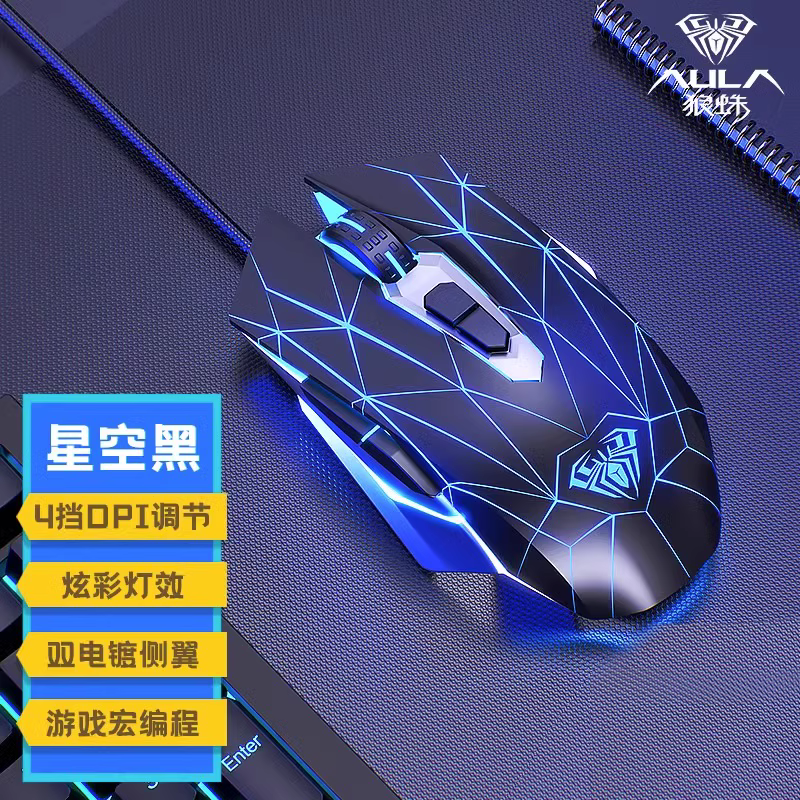 狼蛛S50机械鼠标有线发光宏编程电竞游戏笔记本台式电脑办公家用