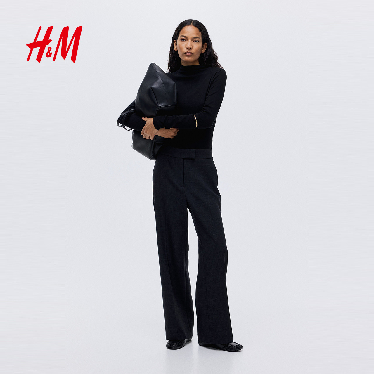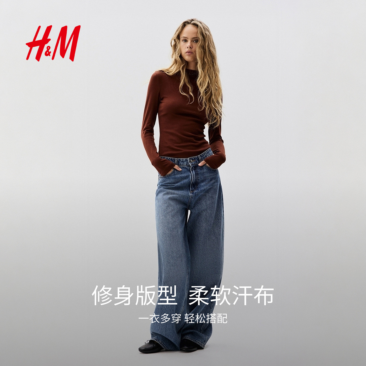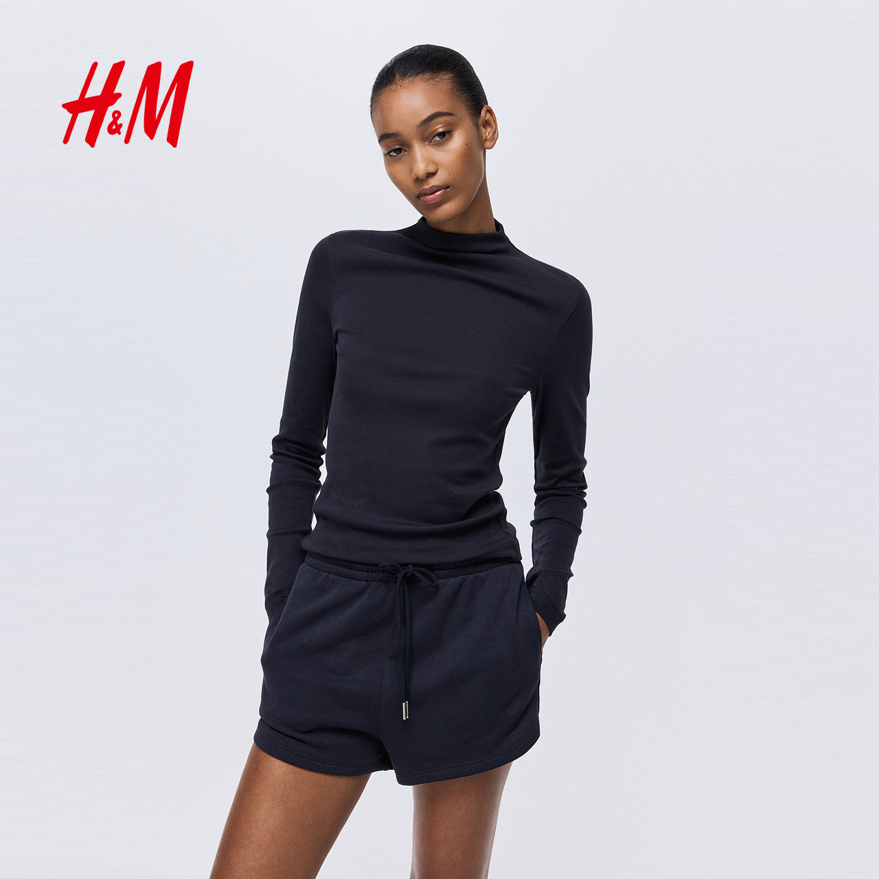 HM女装T恤2025年冬季新款内搭修身高领长袖保暖打底上衣1307934