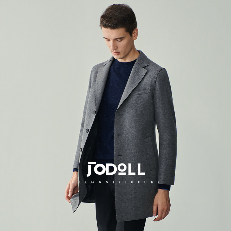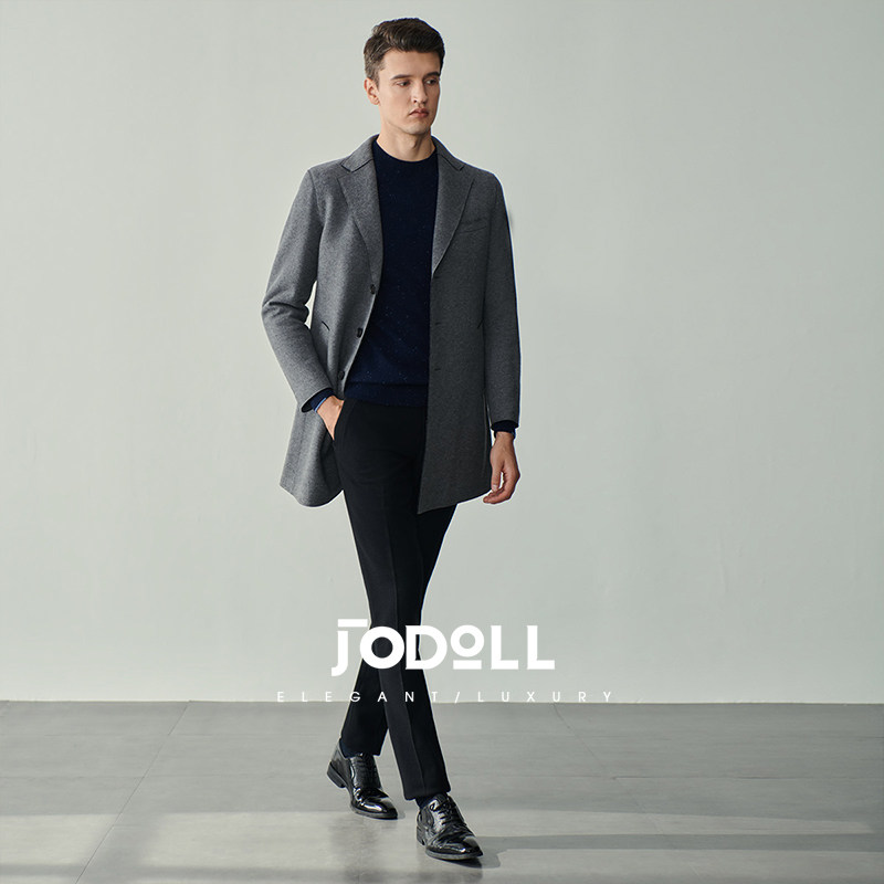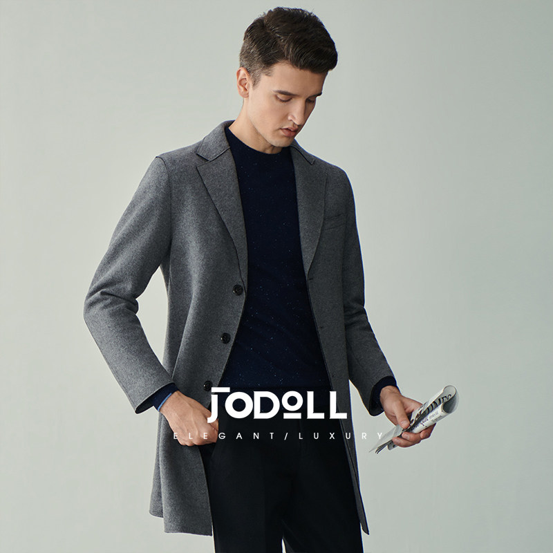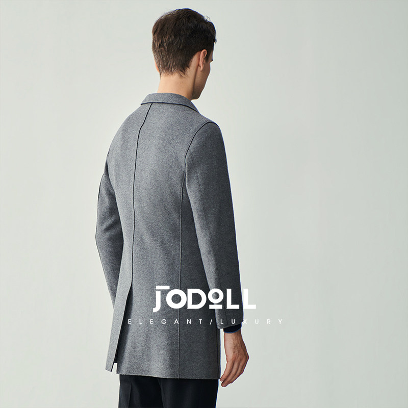 JODOLL乔顿冬季羊毛呢子大衣男韩版潮流修身灰色中长款绵羊毛外套