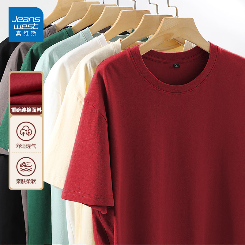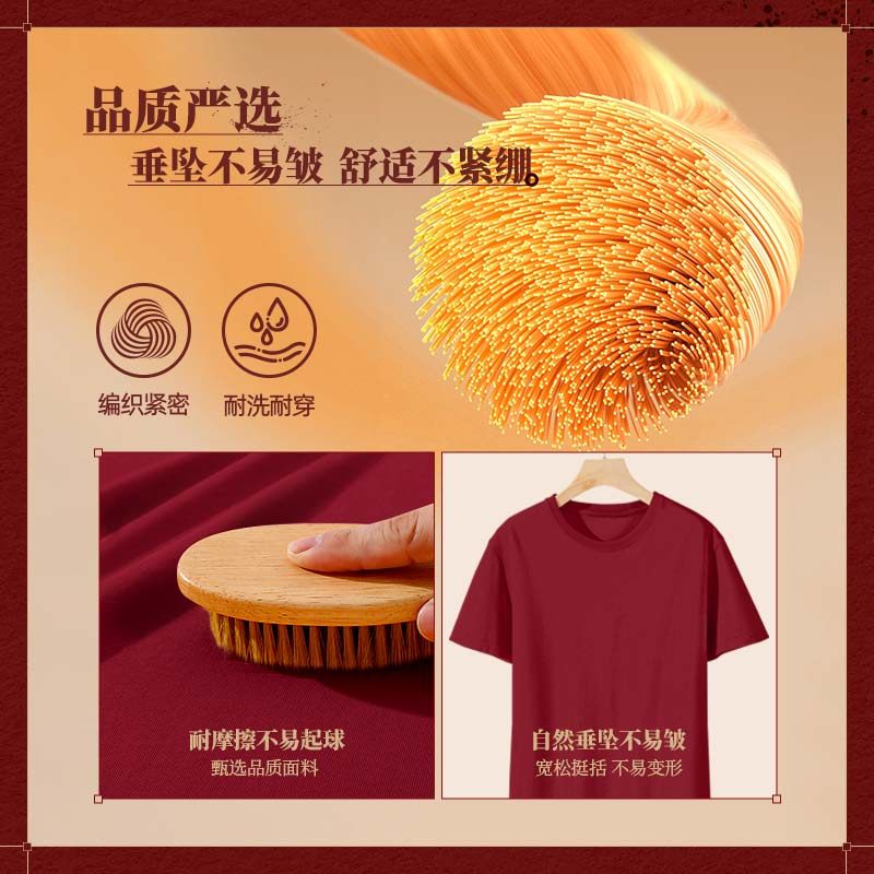 GV真维斯红色纯棉短袖t恤男2025蛇年本命年衣服重磅男士内搭长袖B